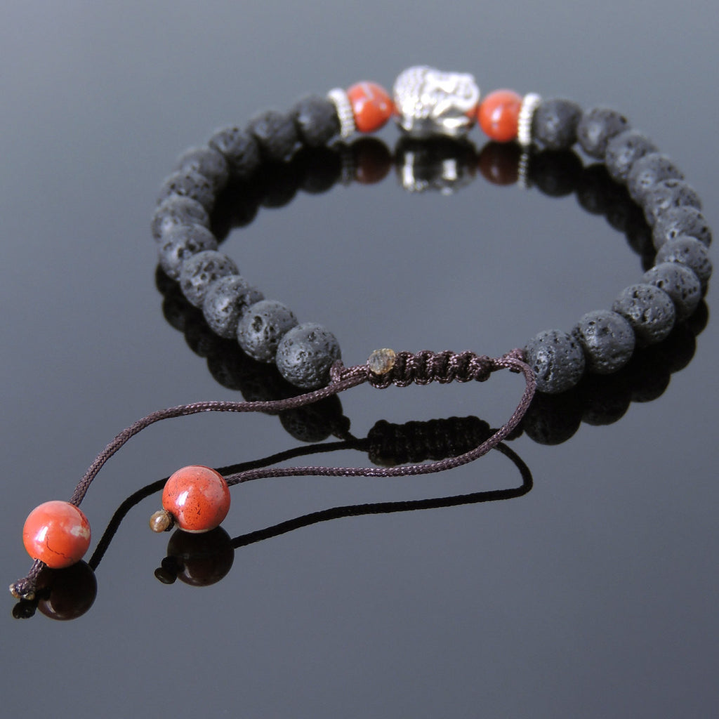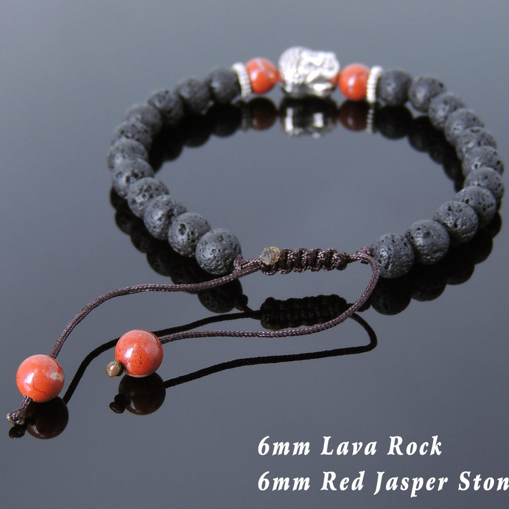 Materials: Gemstone,Lava Rock,Red Jasper Stone,Tibetan Silver,Chinese Strong Braided Cords