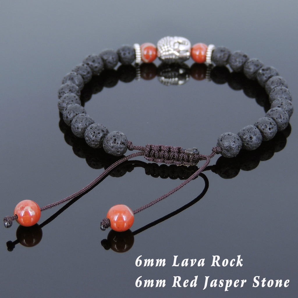 Materials: Gemstone,Lava Rock,Red Jasper Stone,Tibetan Silver,Chinese Strong Braided Cords