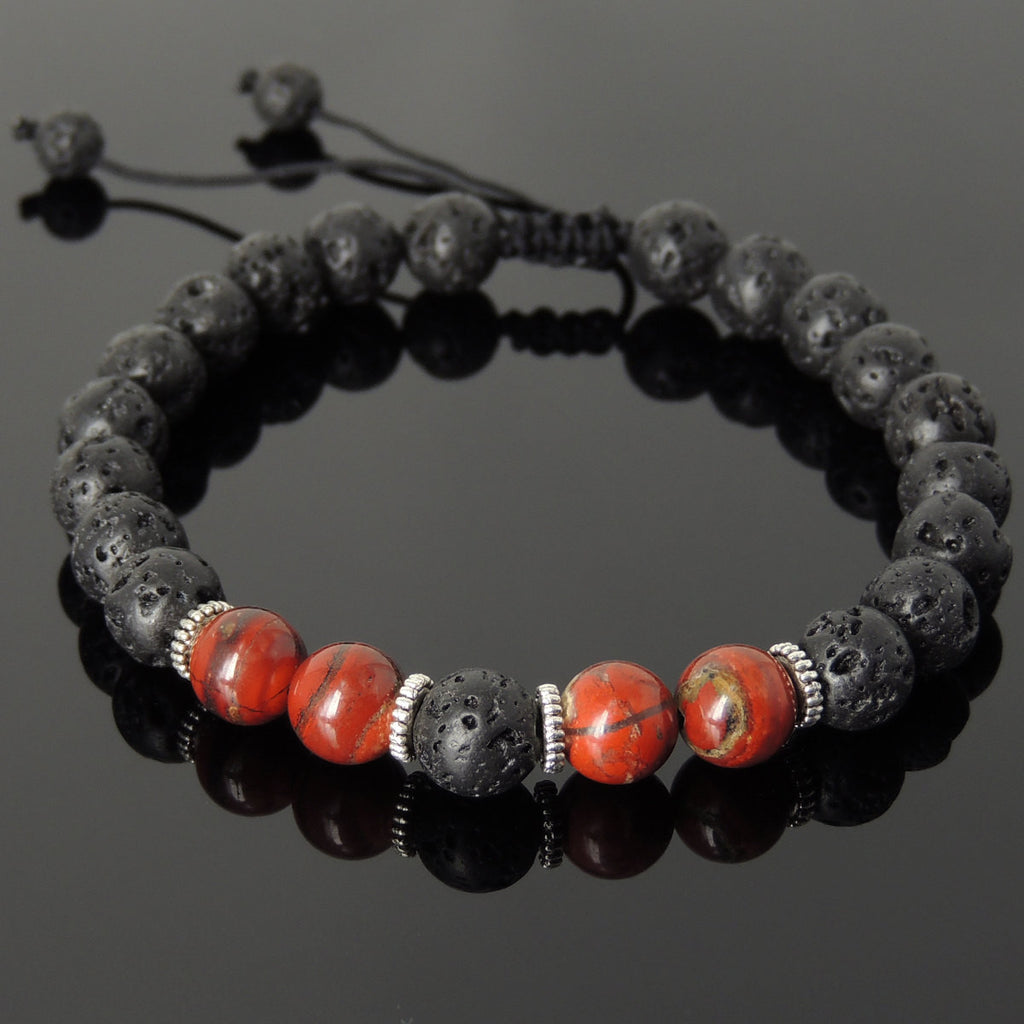 Materials: Gemstone,Lava Rock,Red Jasper Stone,Tibetan Silver,Chinese Braided Cords