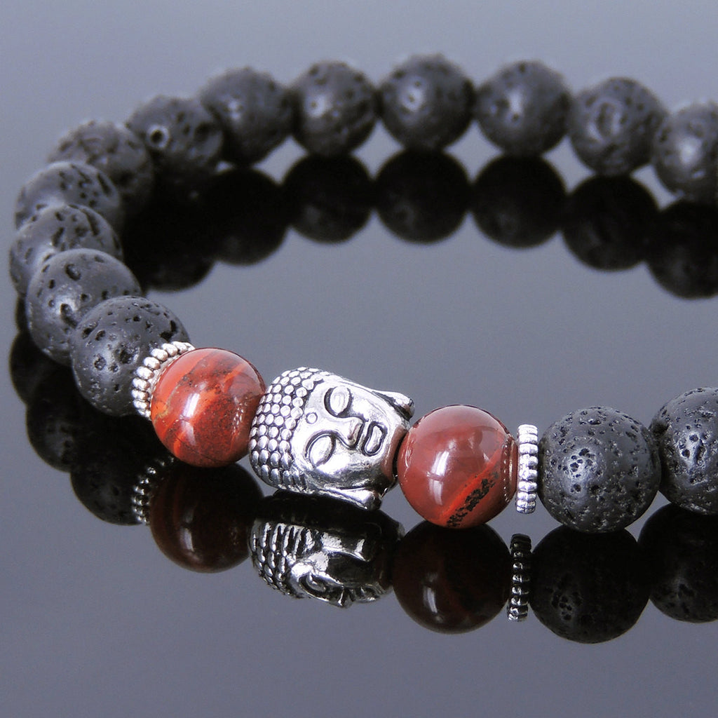 Materials: Lava Rock,Red Jasper Stone,Tibetan Silver,Elastic Cords