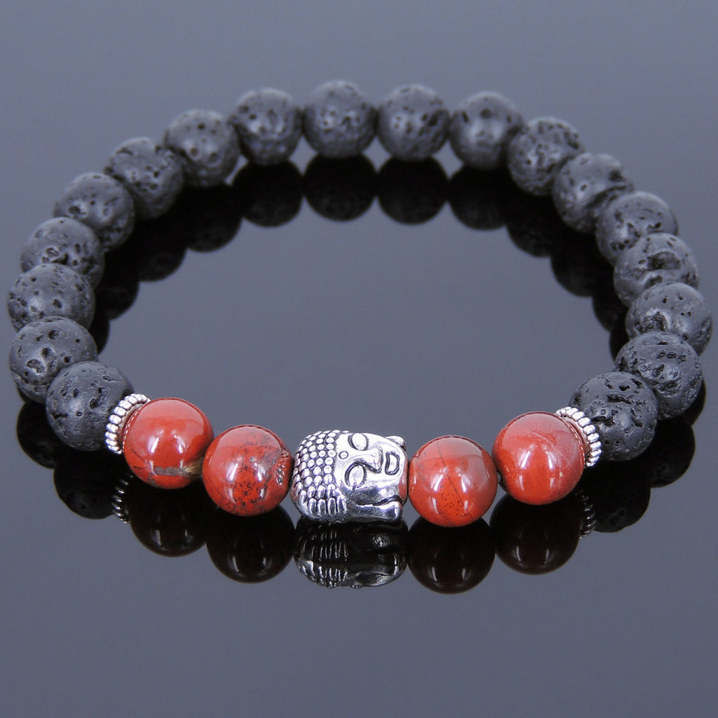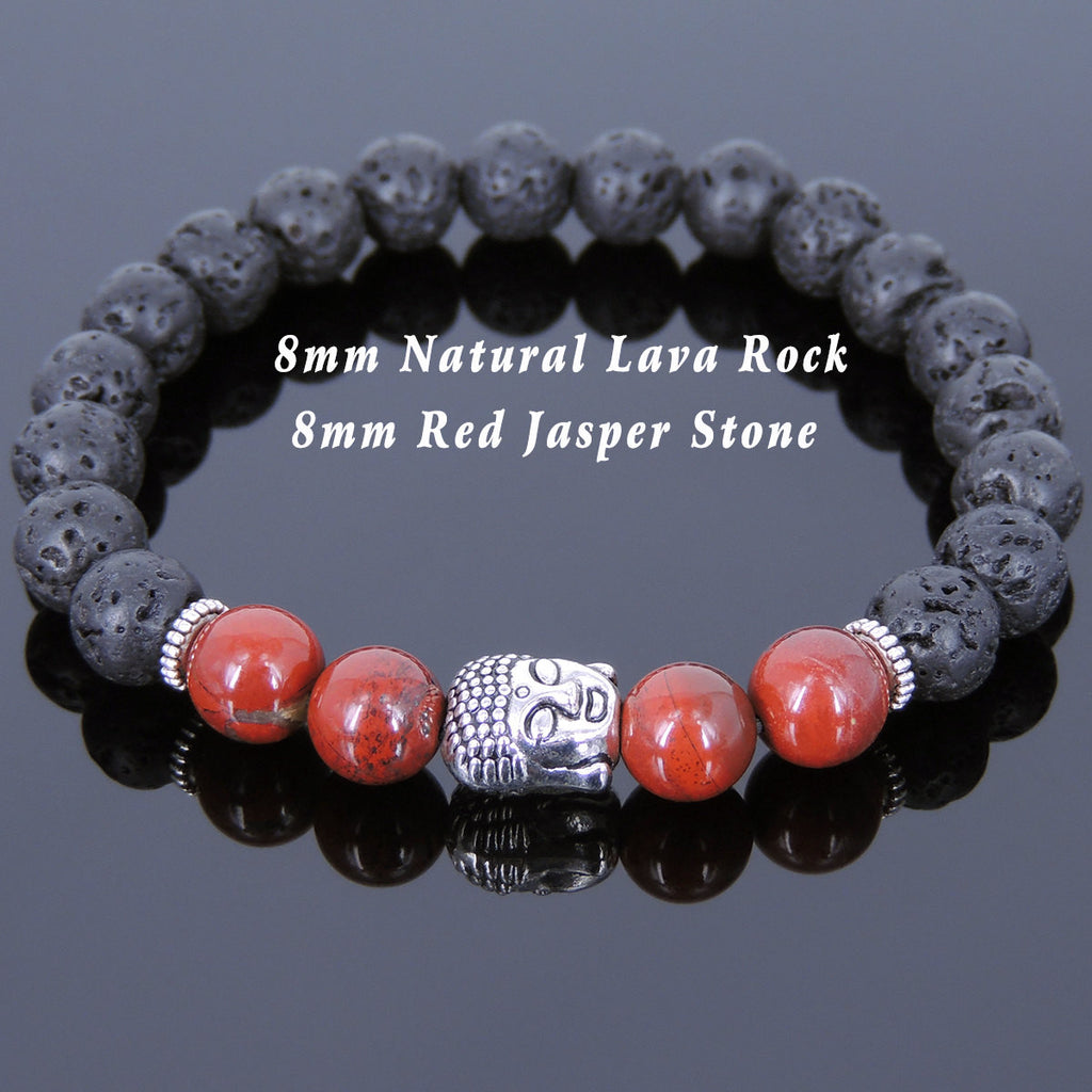 Materials: Lava Rock,Red Jasper Stone,Tibetan Silver,Elastic Cords
