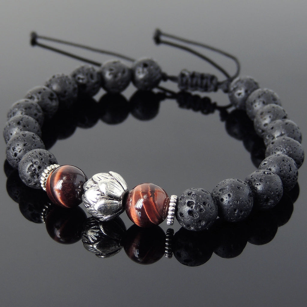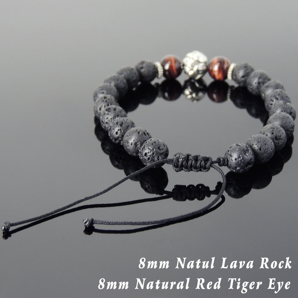 Materials: Lava Rock,Red Tiger Eye,Tibetan Silver,Chinese Strong Braided Cords