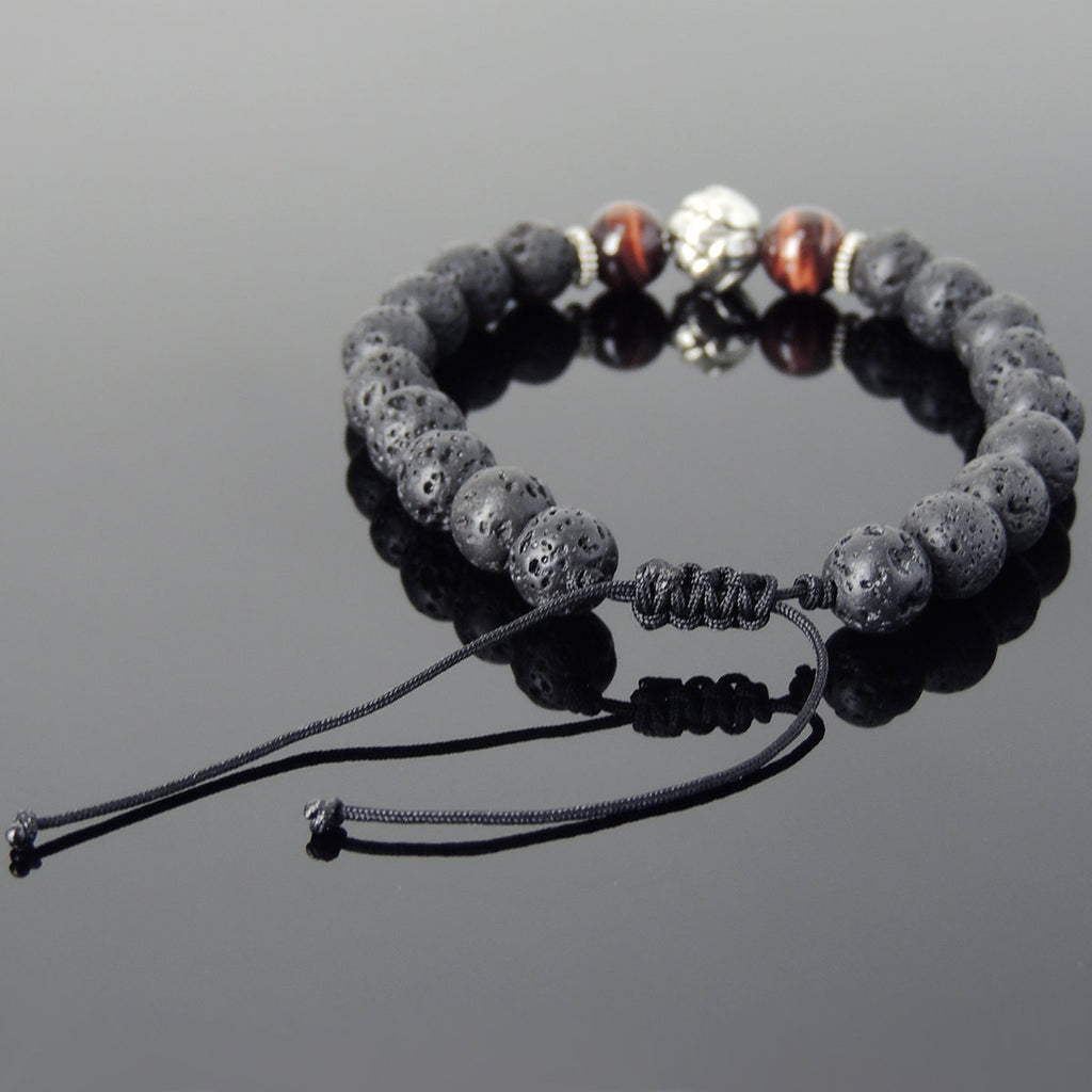 8mm Natural Red Tiger Eye & 8mm Natural Lava Rock