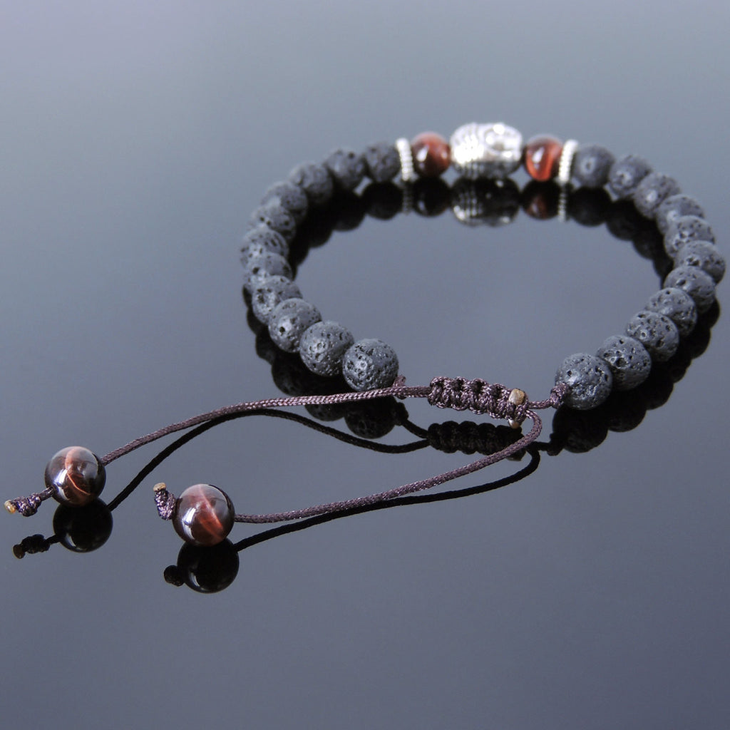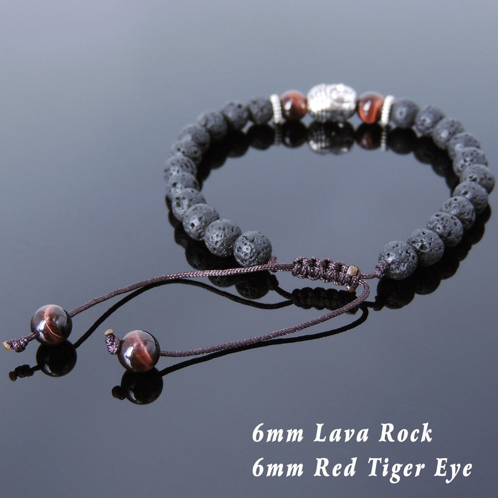 Materials: Gemstone,Lava Rock,Red Tiger Eye,Tibetan Silver,Chinese Strong Braided Cords