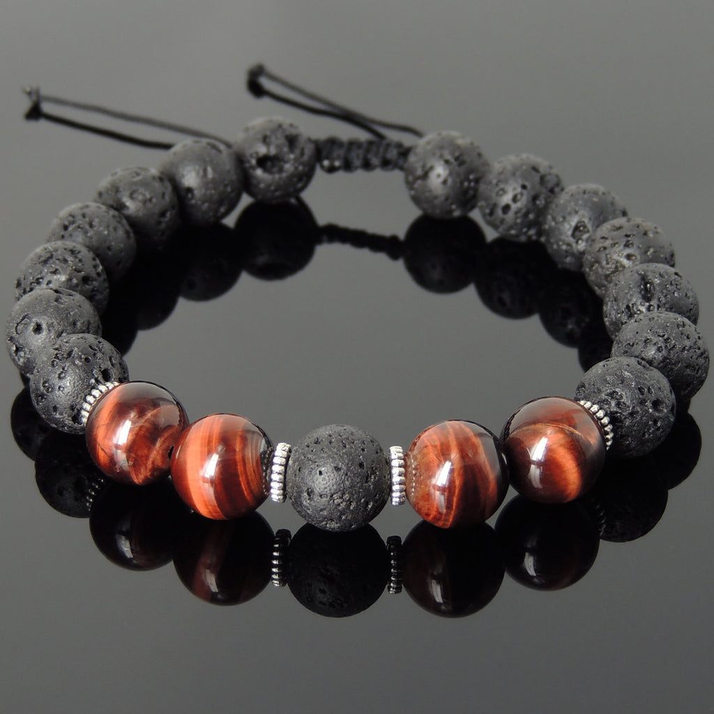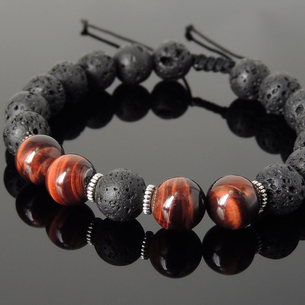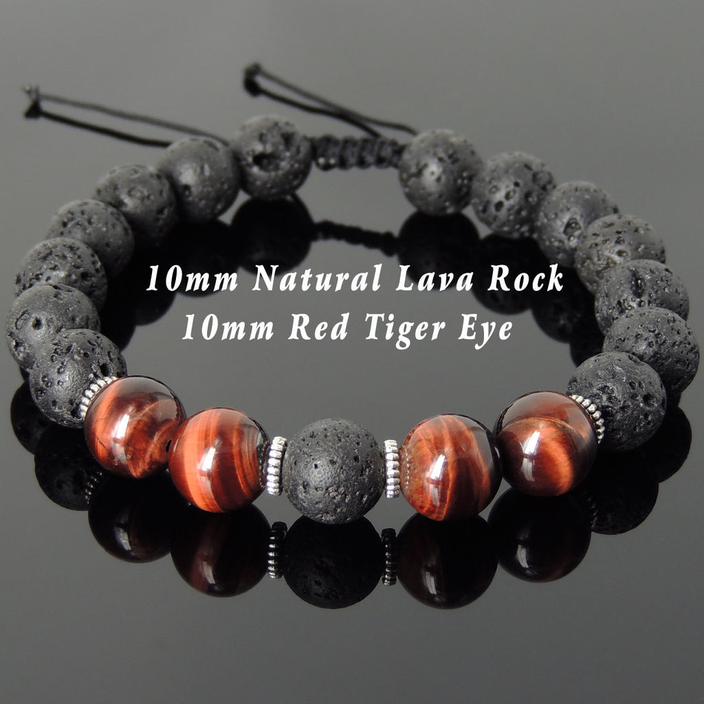 Men's Women Lava Rock Red Tiger Eye Adjustable Braided Bracelet Tibetan Silver Spacers DiyNotion TSB270
