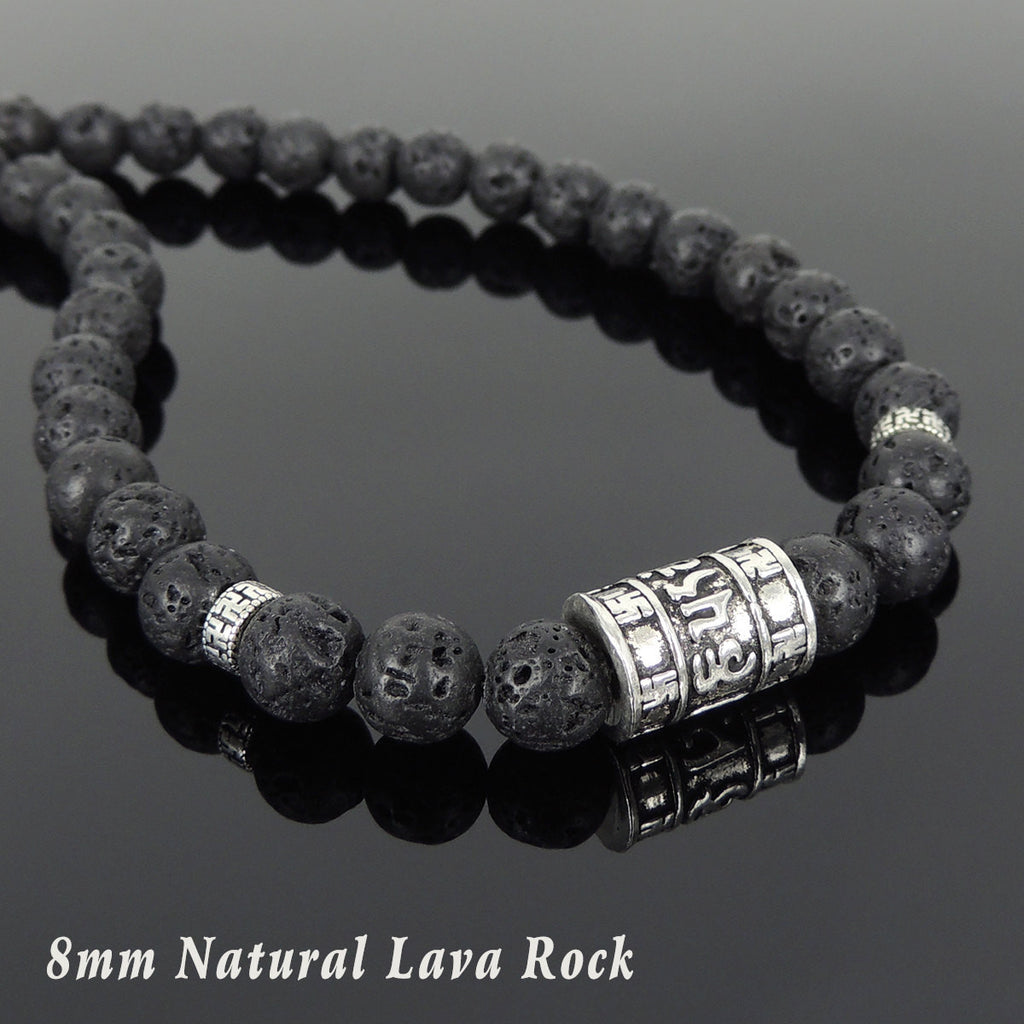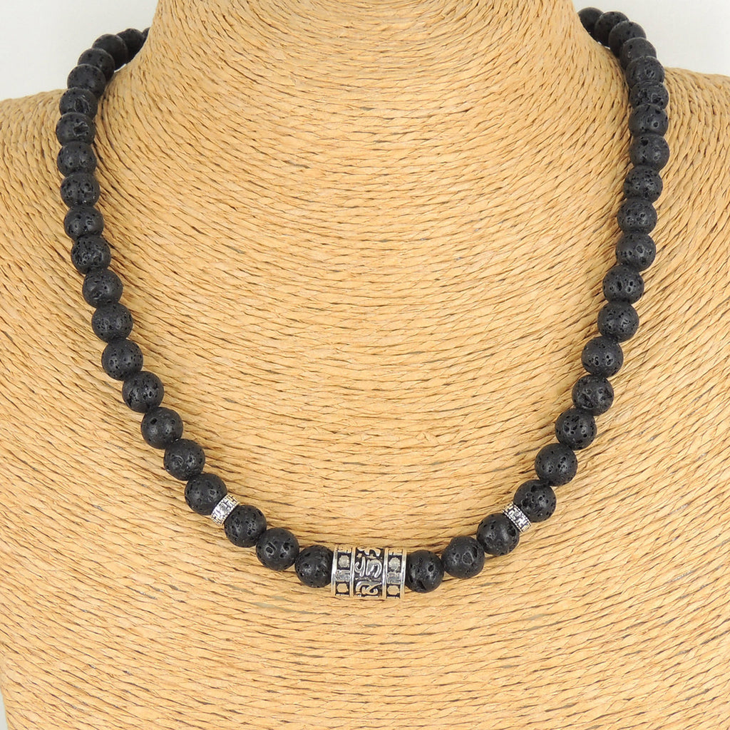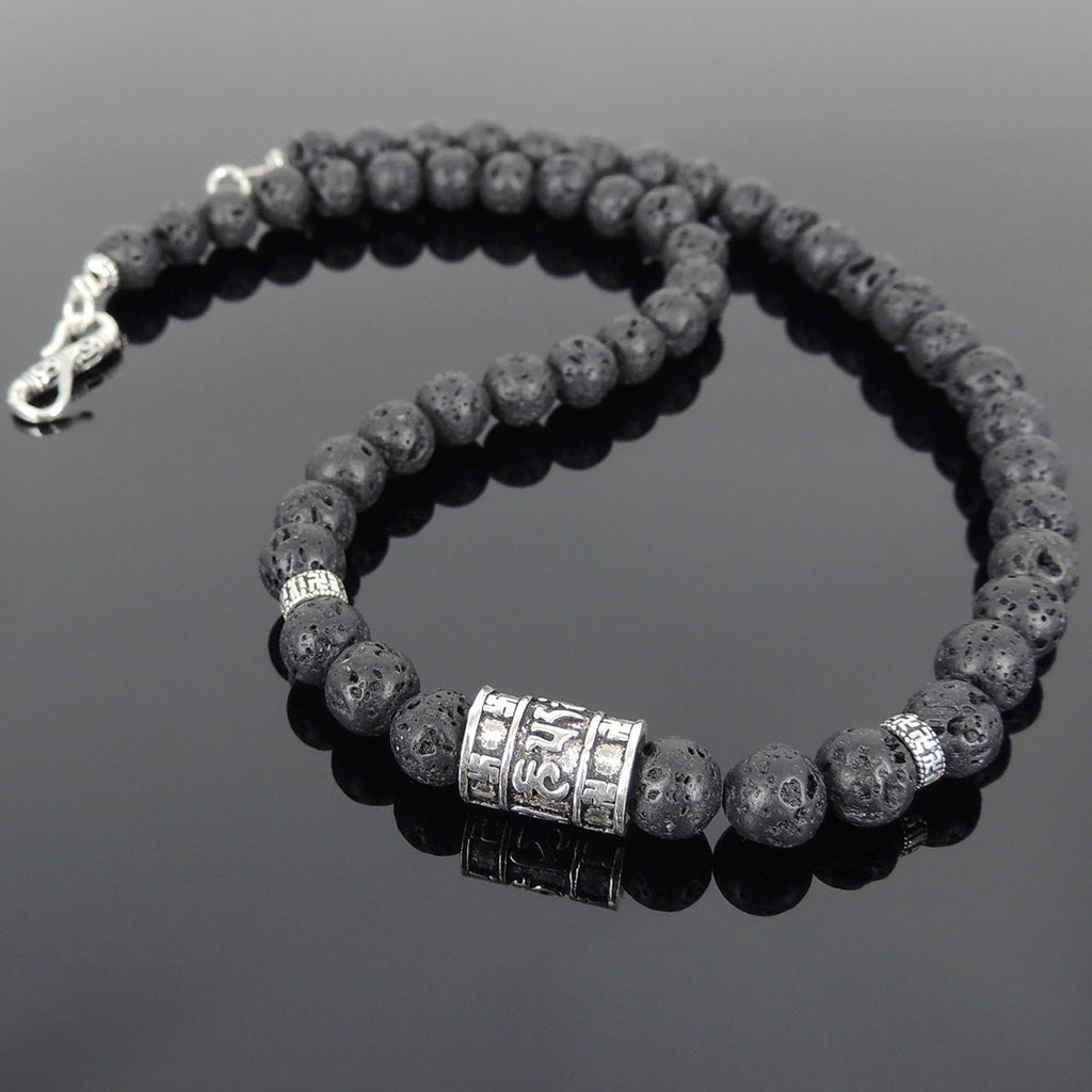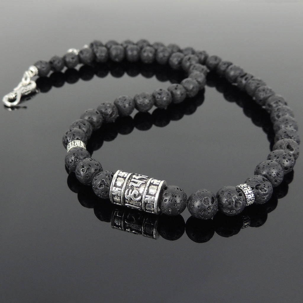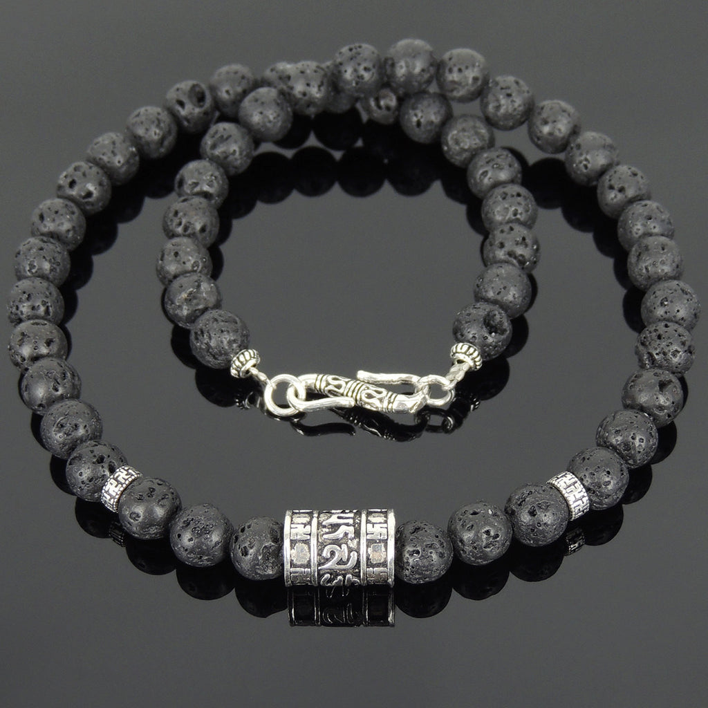 Men's Women Lava Rock Sterling Silver Buddhism Necklace OM Mantra DiyNoion Handmade NK100