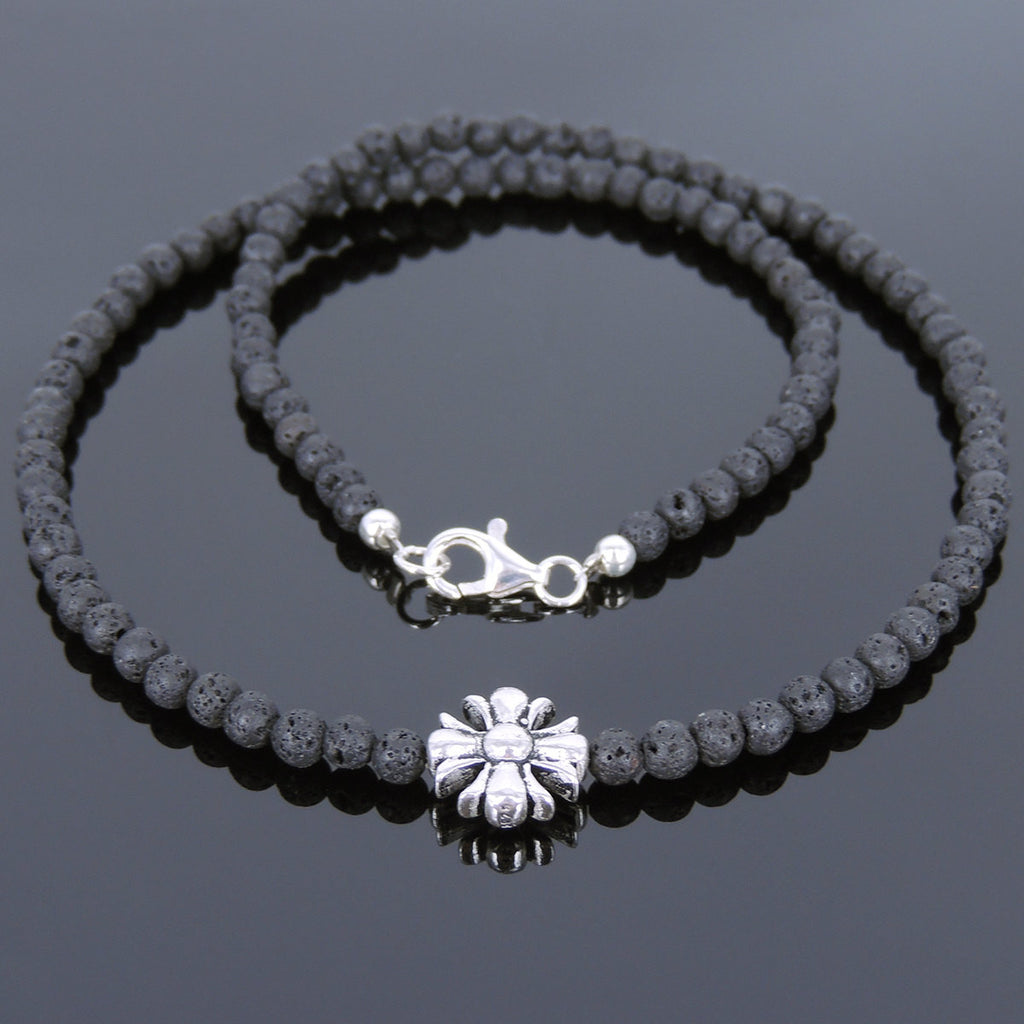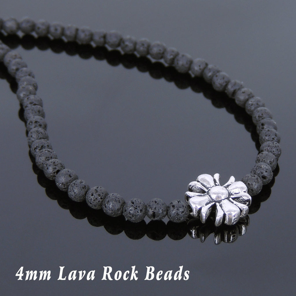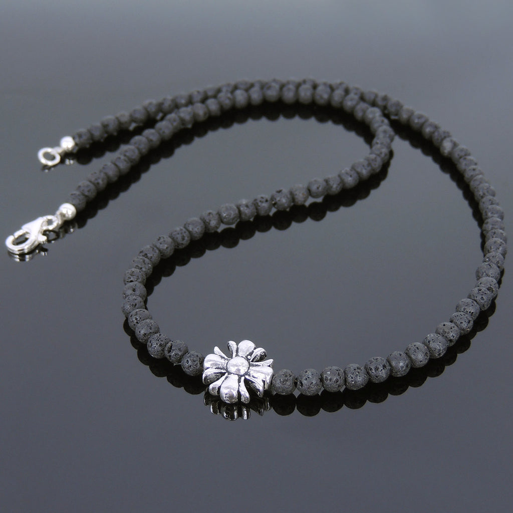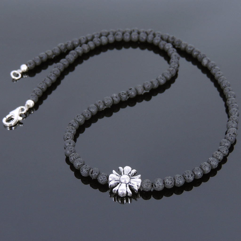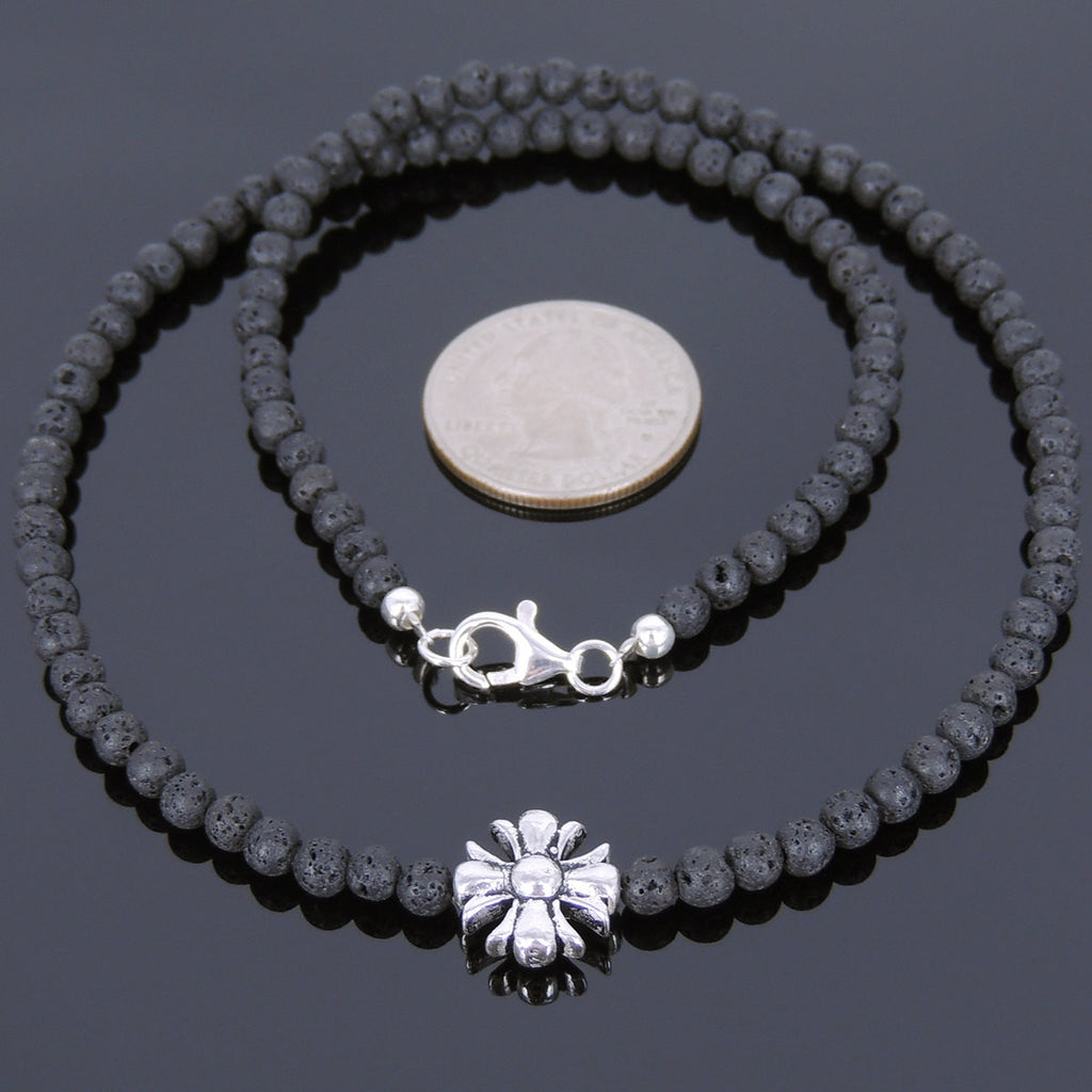 / Men's Women Lava Rock Sterling Silver Necklace Cross Charm DiyNoion Handmade NK075