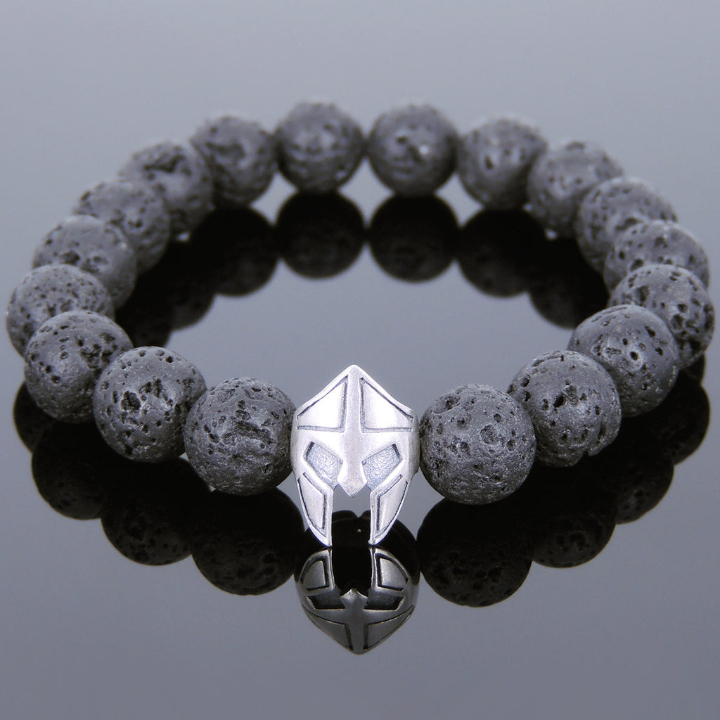 Men's Women Lava Rock Sterling Silver Warrior Mask Bracelet DiyNotion Handmade BR727
