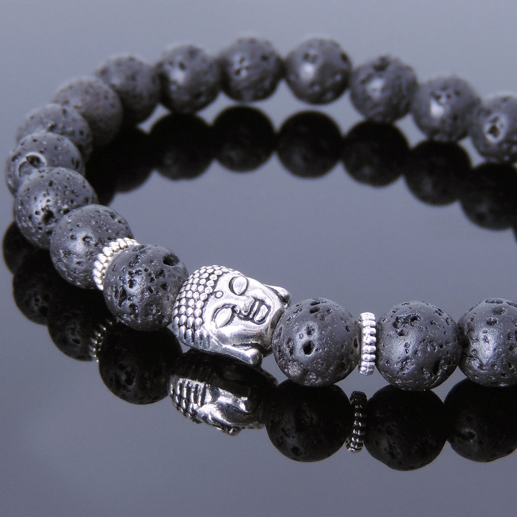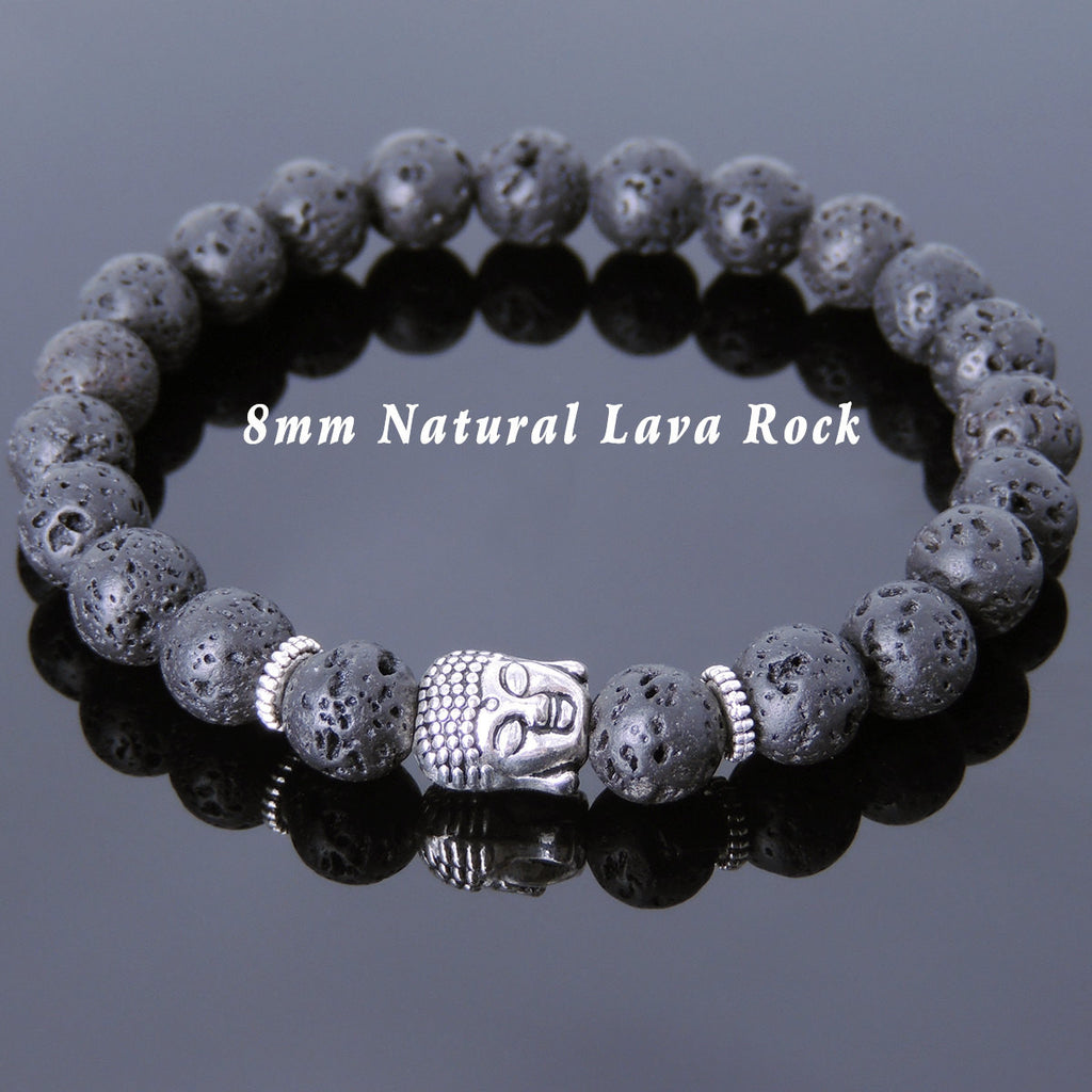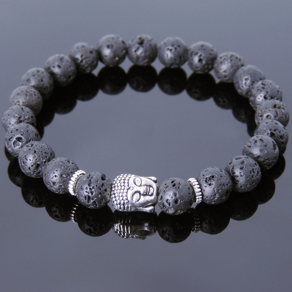 Men's Women Lava Rock Tibetan Silver Bracelet Sakyamuni Buddha Yoga Mala DiyNotion Handmade T149