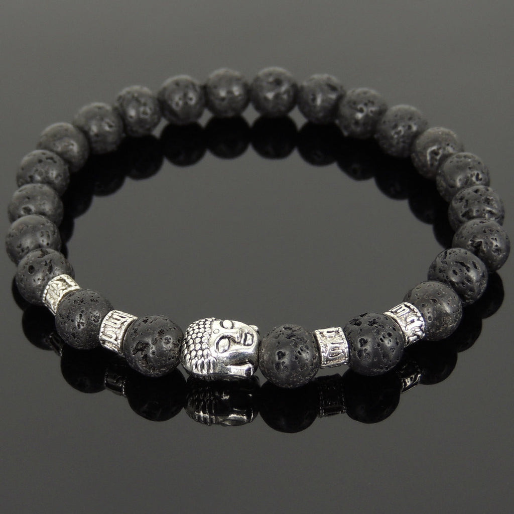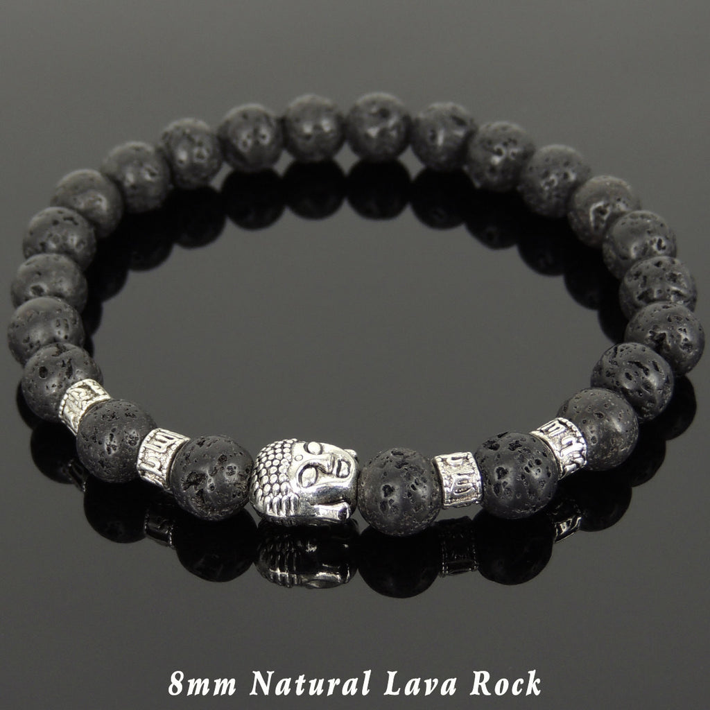Materials: Lava Rock,Tibetan Silver,Elastic Cords