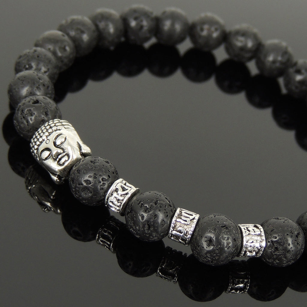 Materials: Lava Rock,Tibetan Silver,Elastic Cords