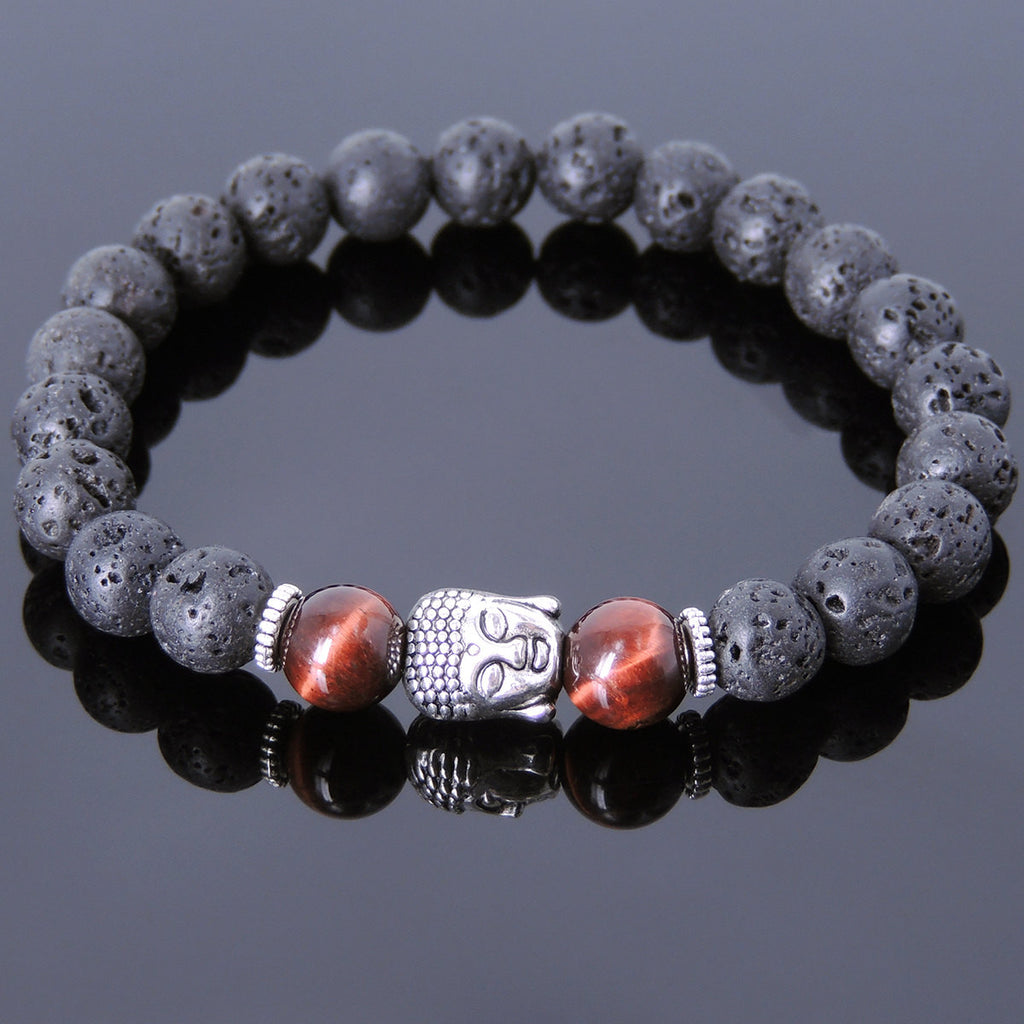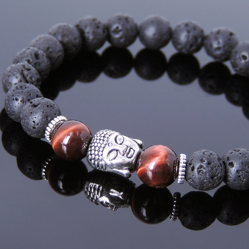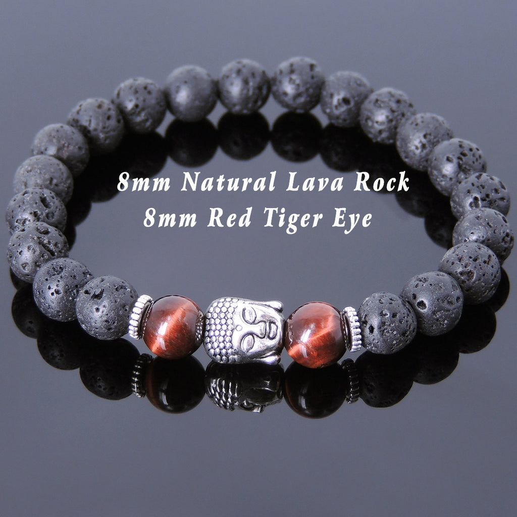 Men's Women Lava Rock Tiger Eye Tibetan Silver Bracelet Sakyamuni Buddha Yoga Mala DiyNotion Handmade T152