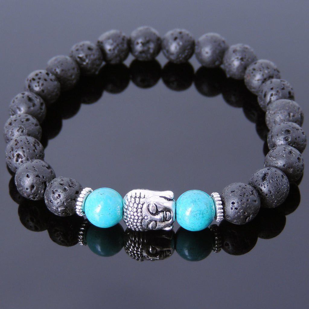 Men's Women Lava Rock Turquoise Tibetan Silver Bracelet Sakyamuni Buddha Yoga Mala DiyNotion Handmade T153