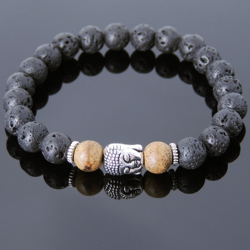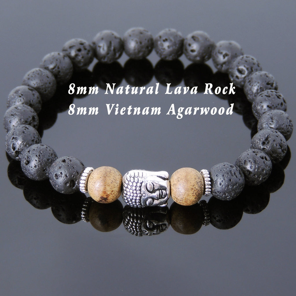Materials: Lava Rock,Vietnam Agarwood,Tibetan Silver,Elastic Cords