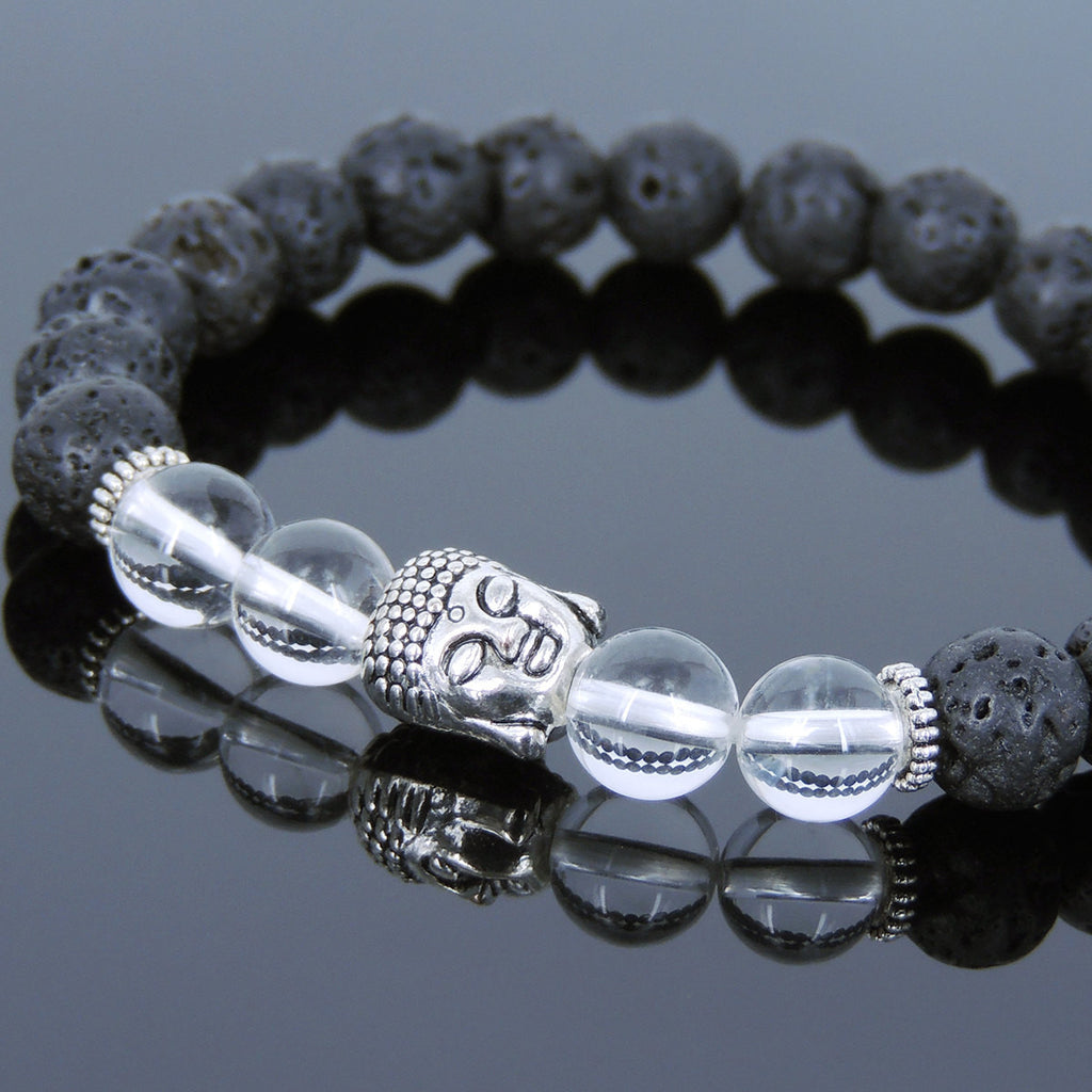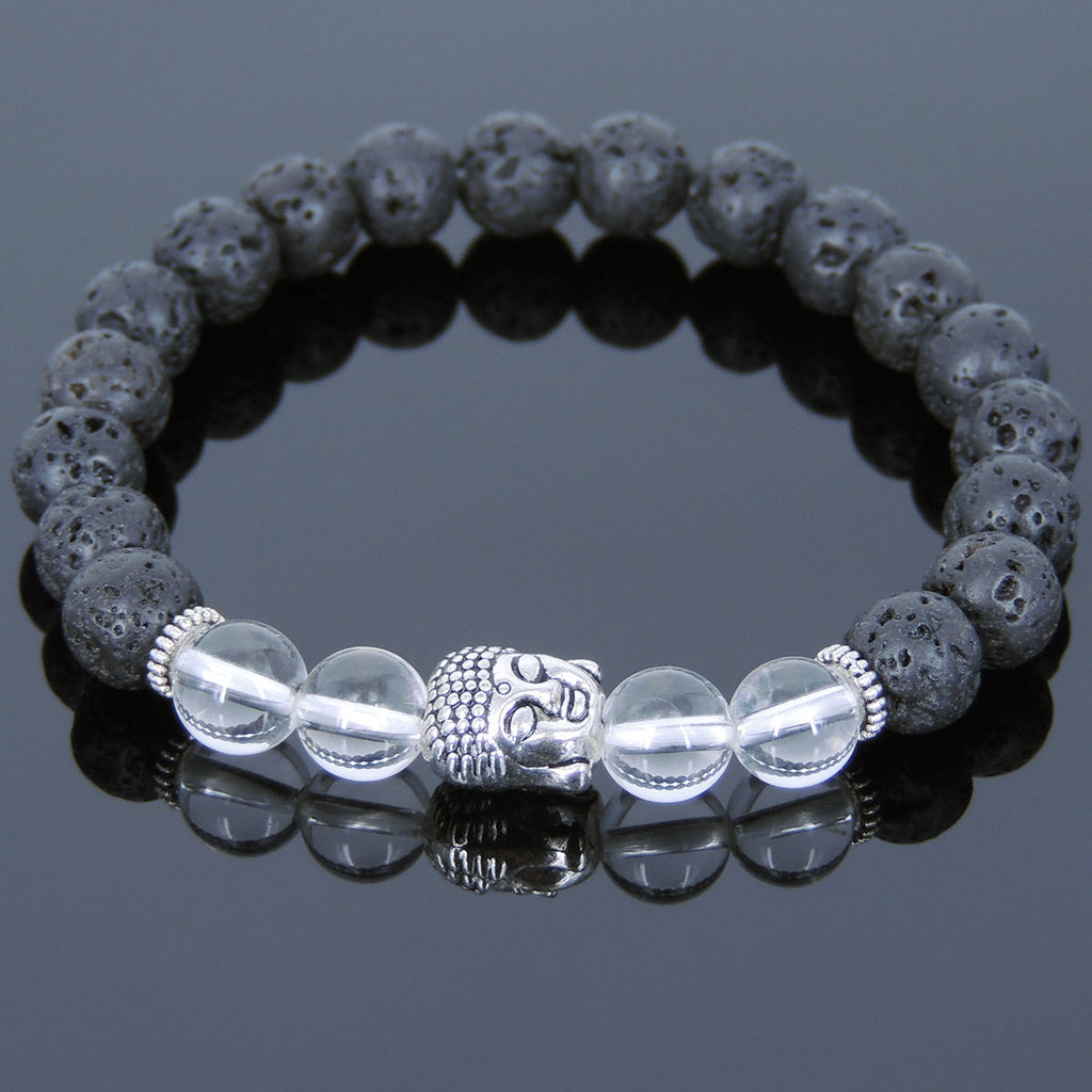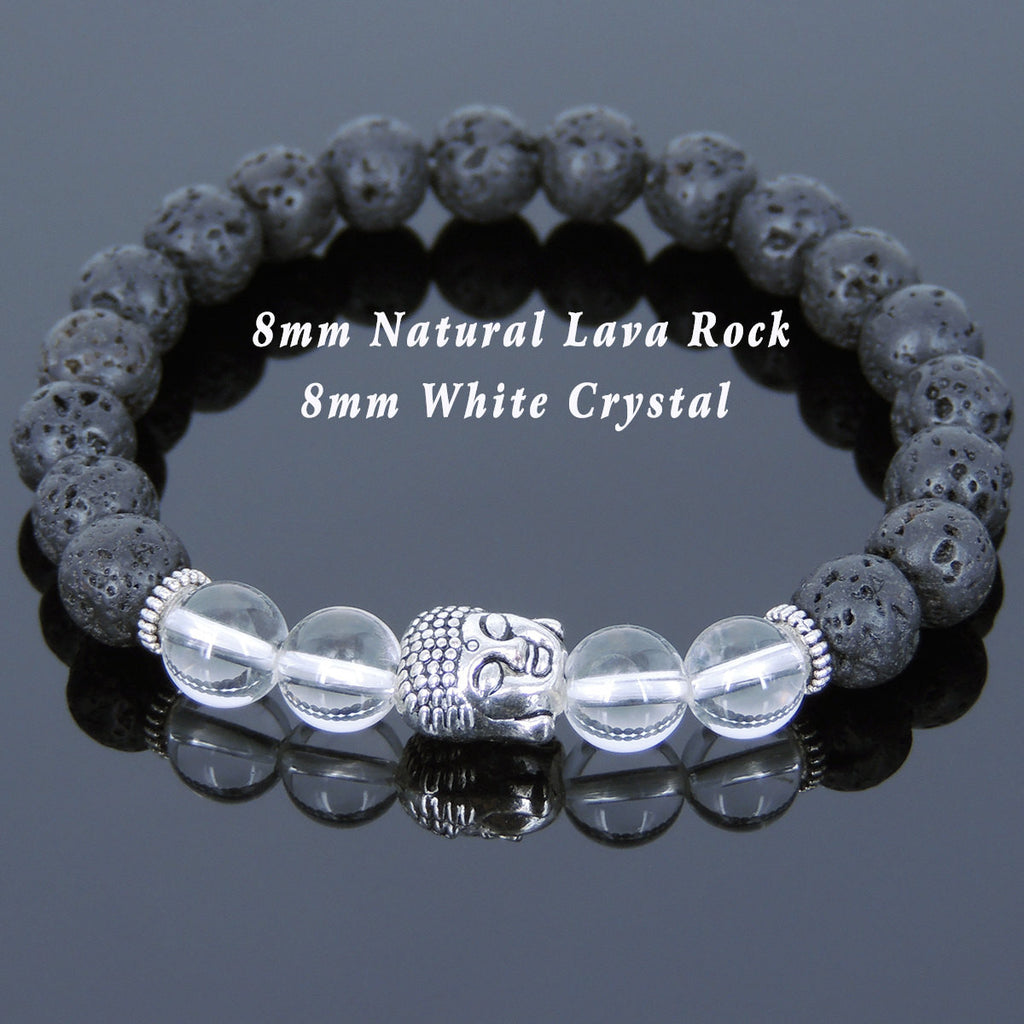 Men's Women Lava Rock White Crystal Tibetan Silver Bracelet Sakyamuni Buddha Yoga Mala DiyNotion Handmade T176
