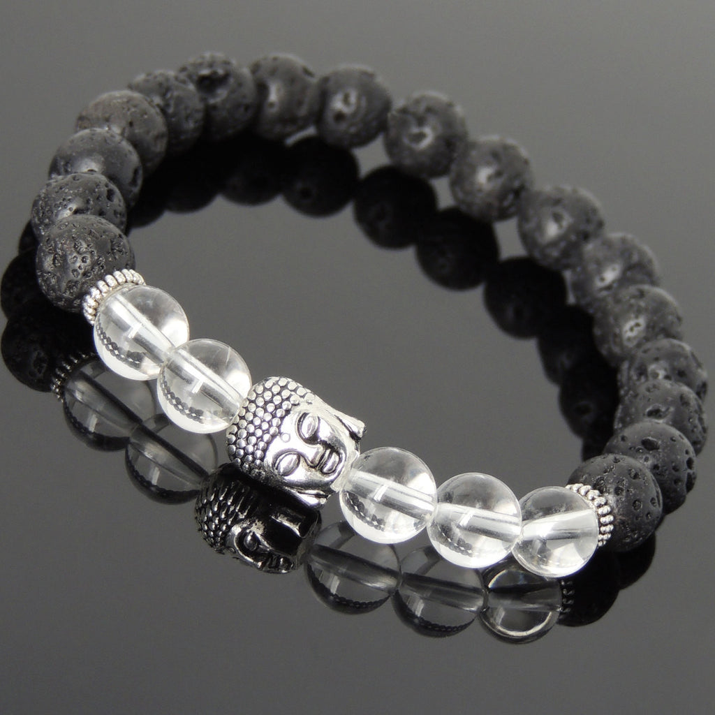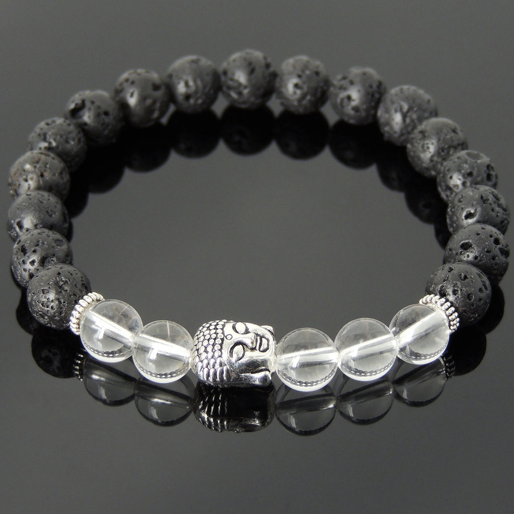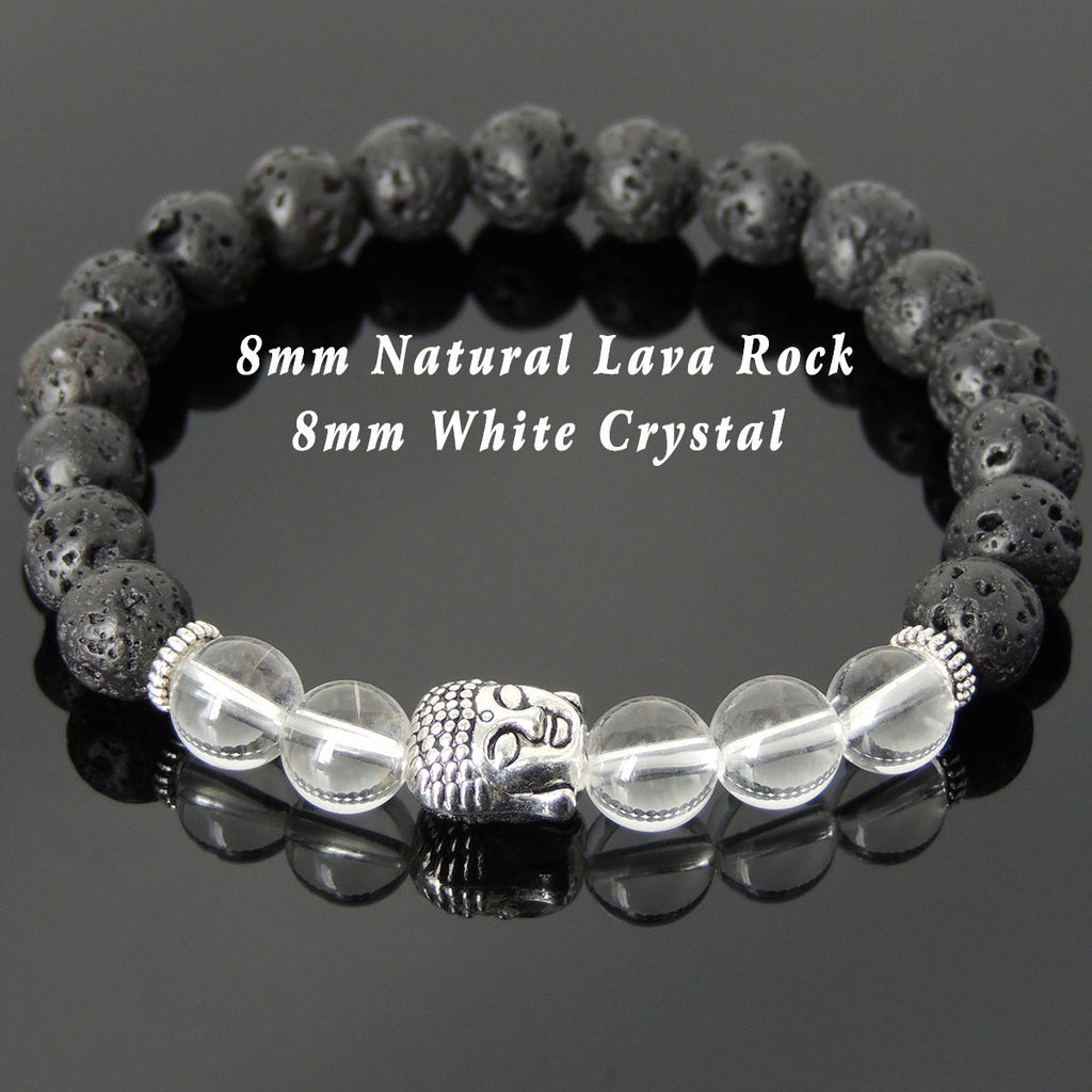 Men's Women Lava Rock White Crystal Tibetan Silver Bracelet Sakyamuni Buddha Yoga Mala DiyNotion Handmade T190