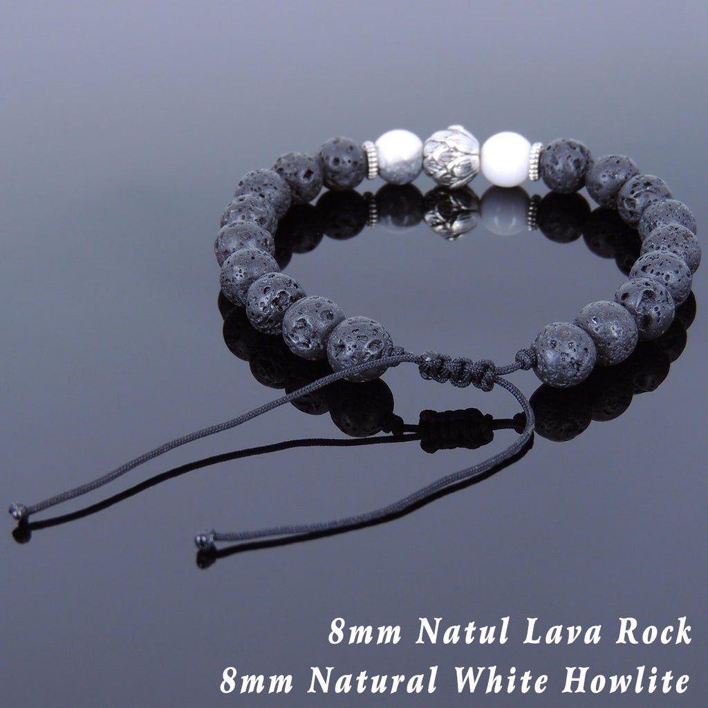 Men's Women Lava Rock White Howlite Adjustable Braided Bracelet Tibetan Silver Lotus Bead DiyNotion T259