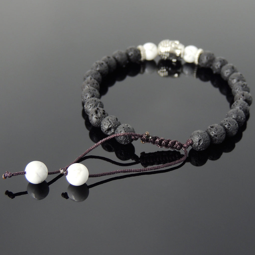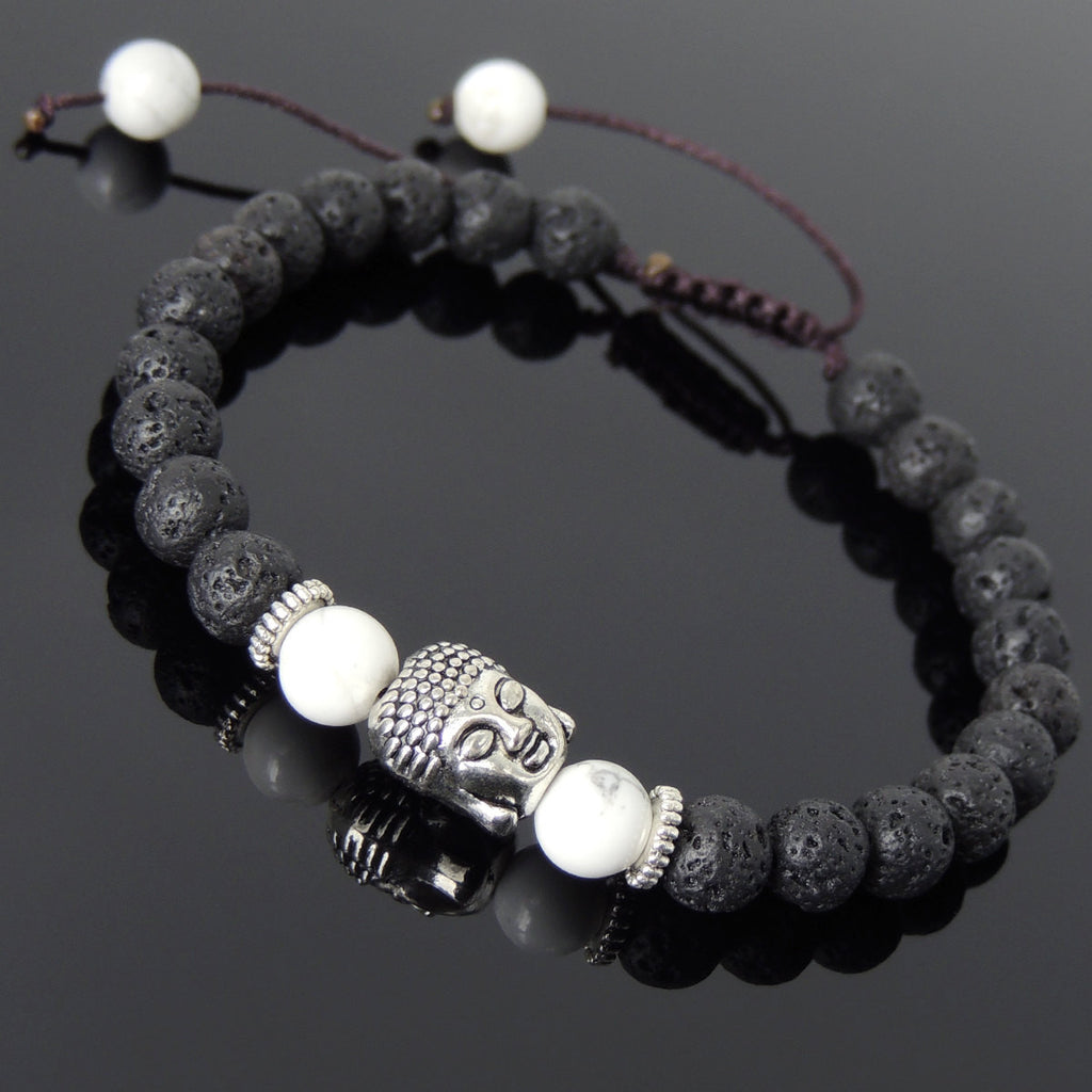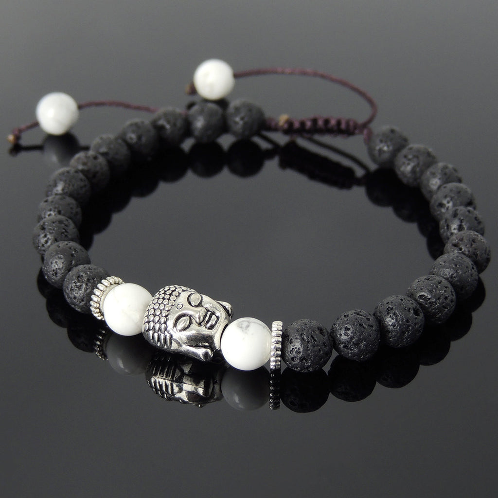 Materials: Gemstone,Lava Rock,White Howlite,Tibetan Silver,Chinese Strong Braided Cords
