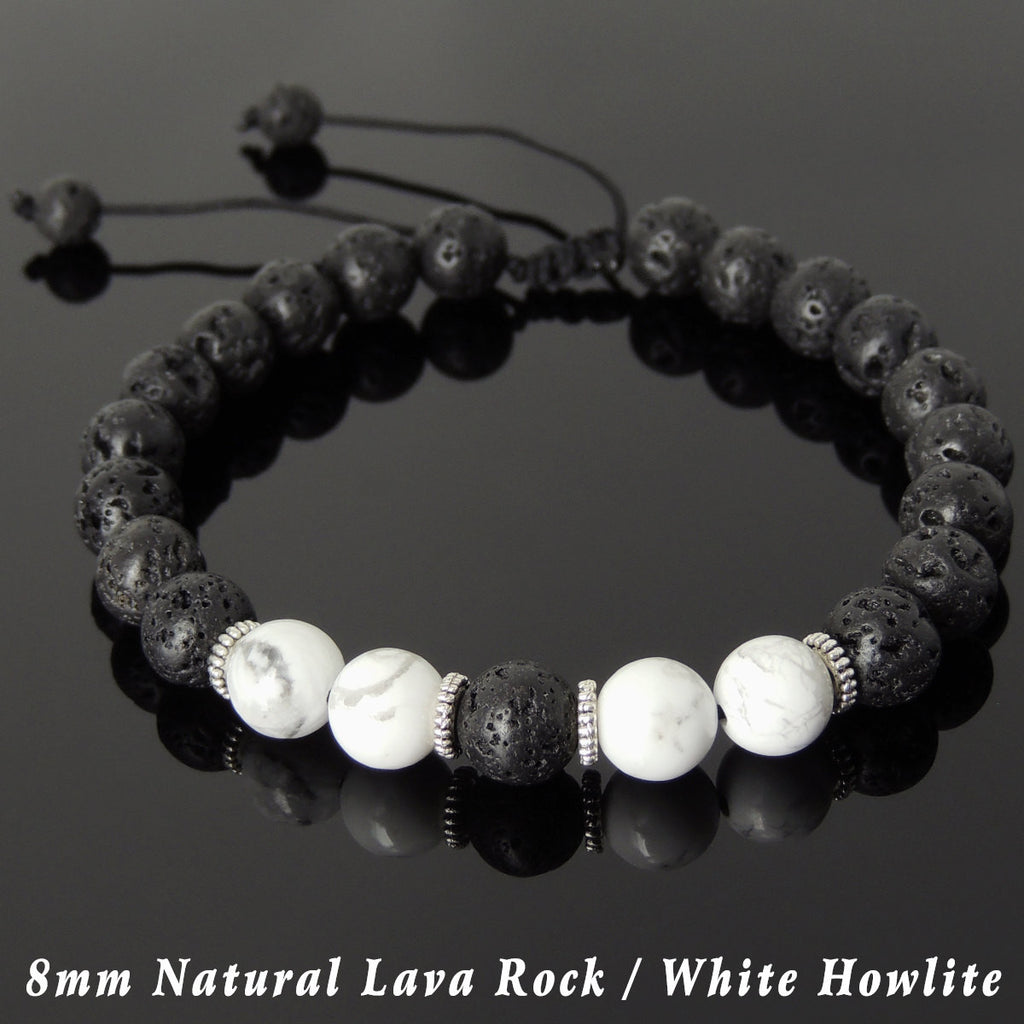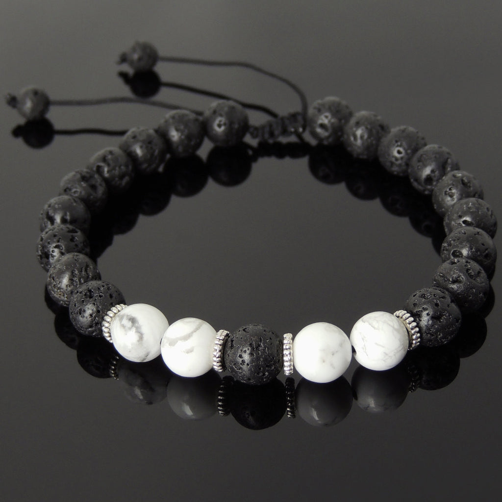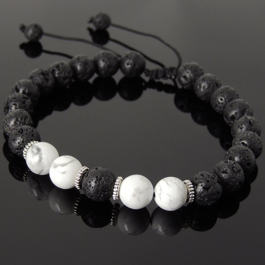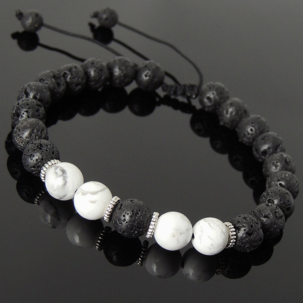 Men's Women Lava Rock White Howlite Adjustable Braided Bracelet Tibetan Silver Spacers DiyNotion TSB275