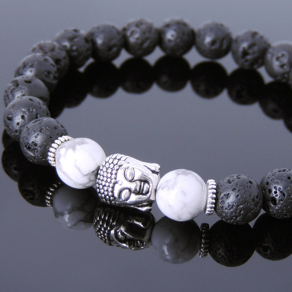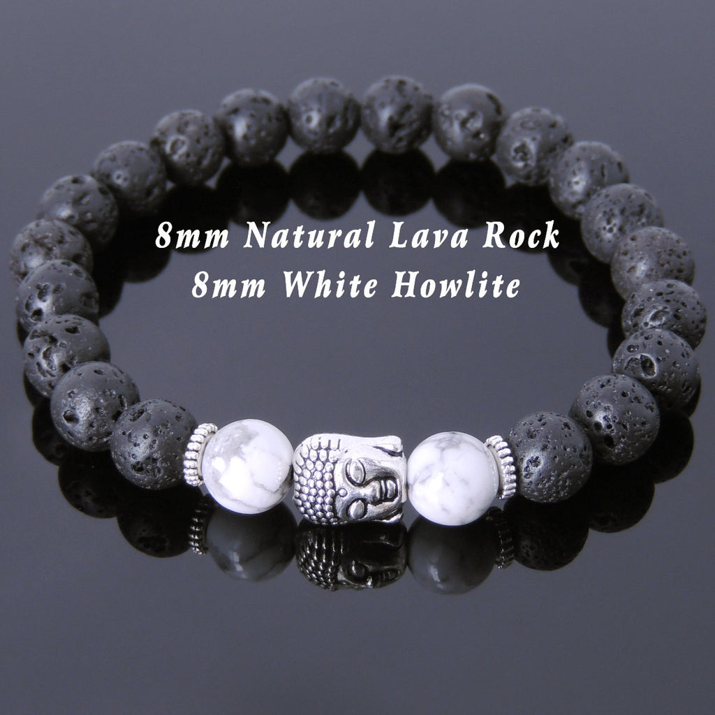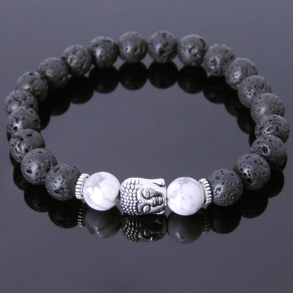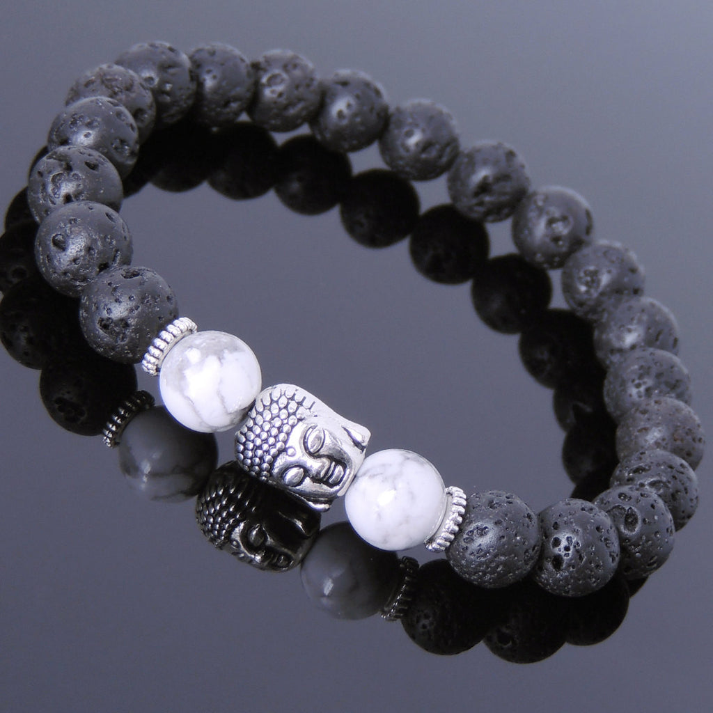 Materials: Lava Rock,White Howlite,Tibetan Silver,Elastic Cords