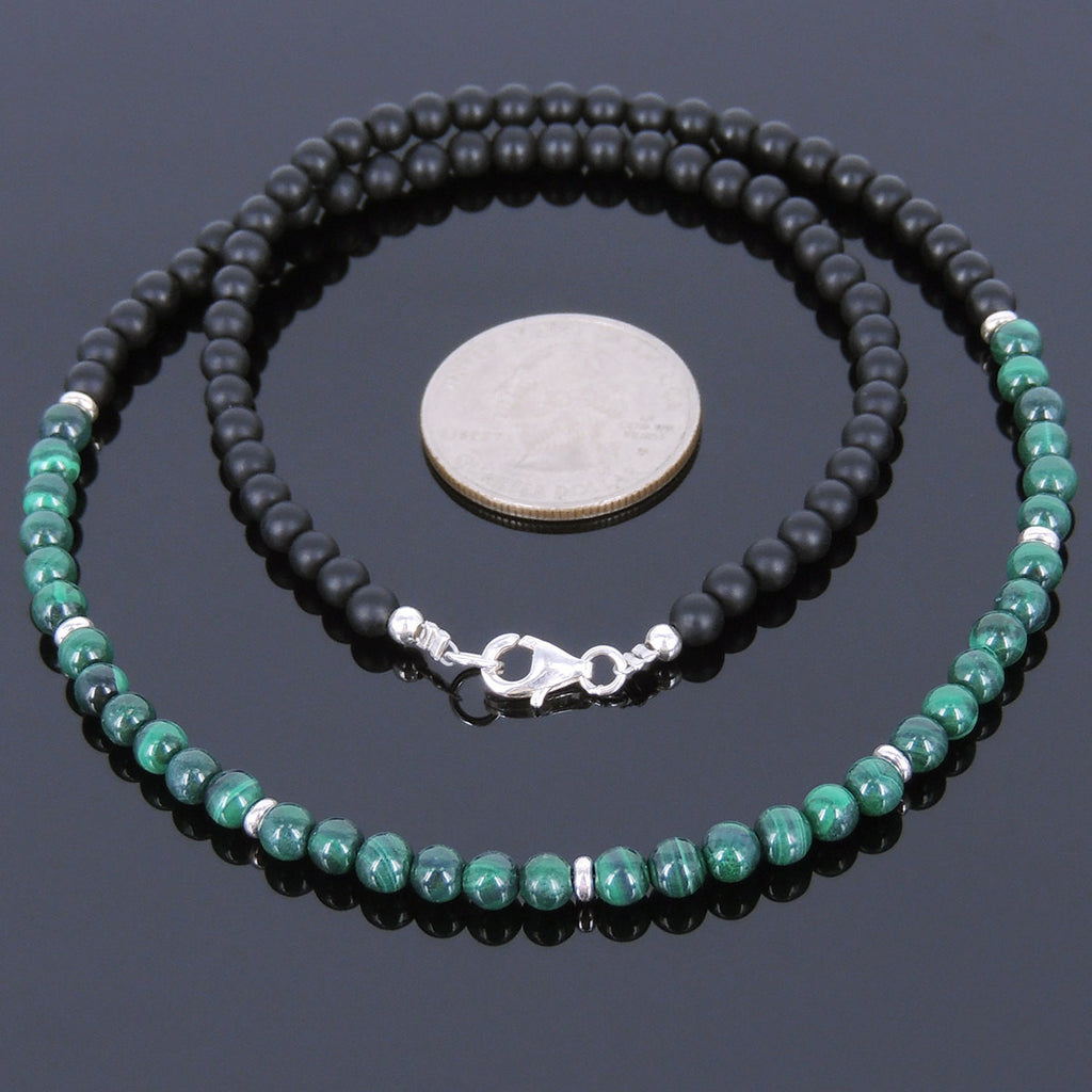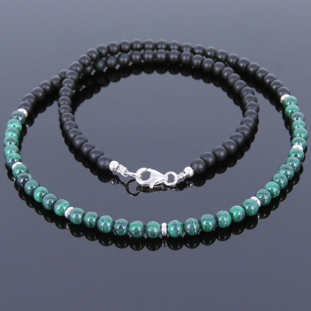 Materials: Gemstone,Matte Black Onyx,Malachite,925 Sterling Silver
