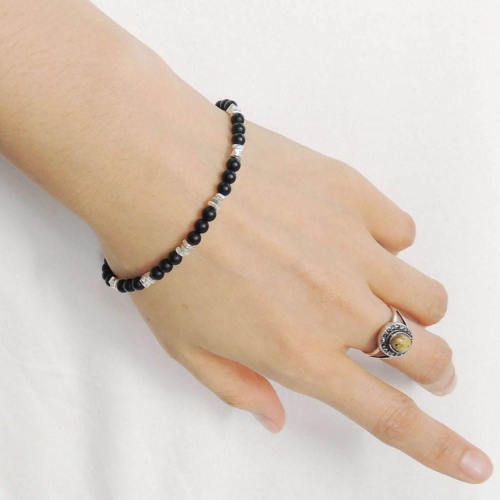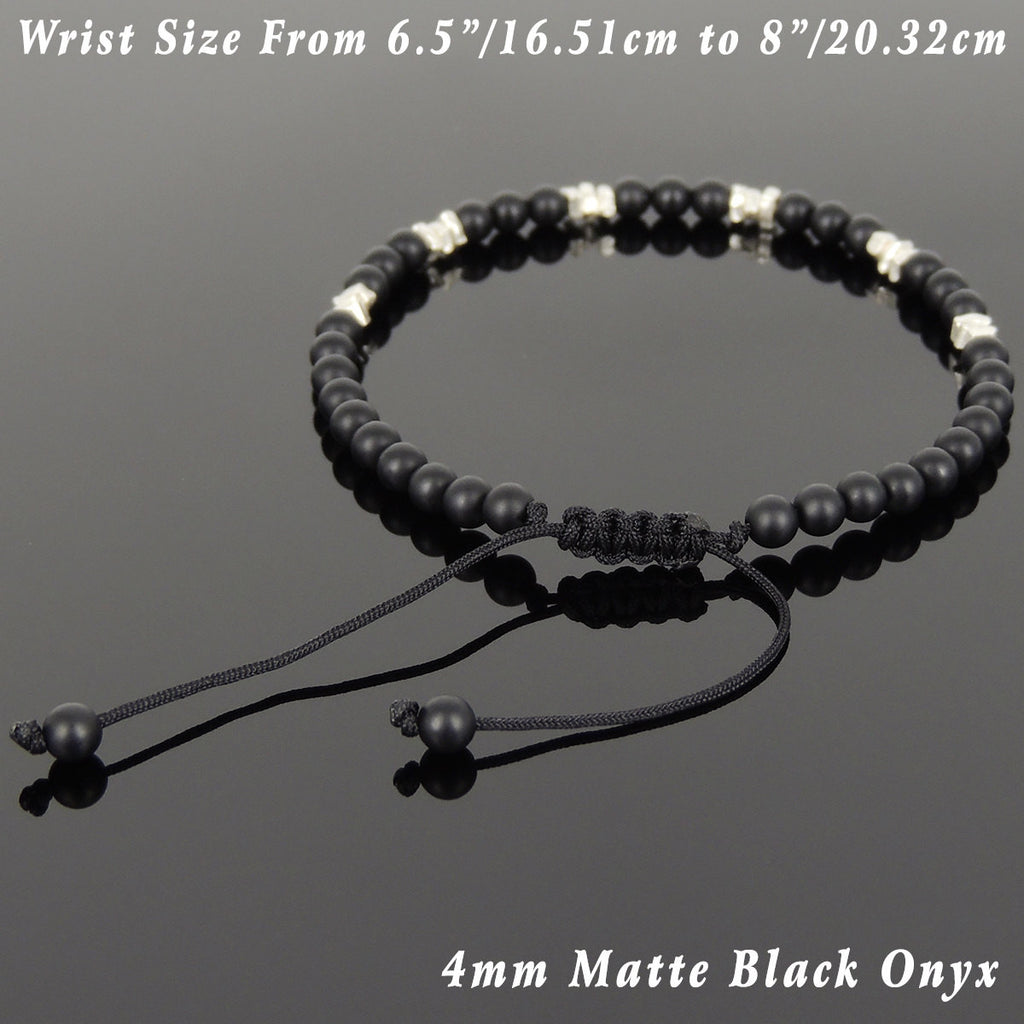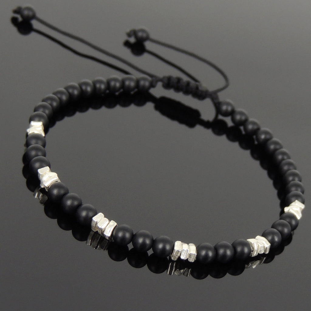 Men's Women Matte Black Onyx Adjustable Braided Bracelet 925 Sterling Silver Nugget Beads DiyNotion BR947