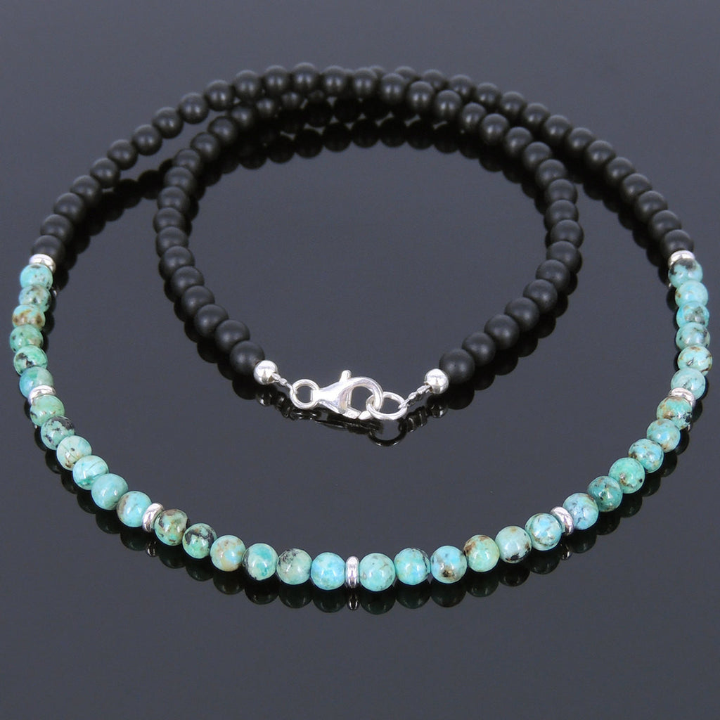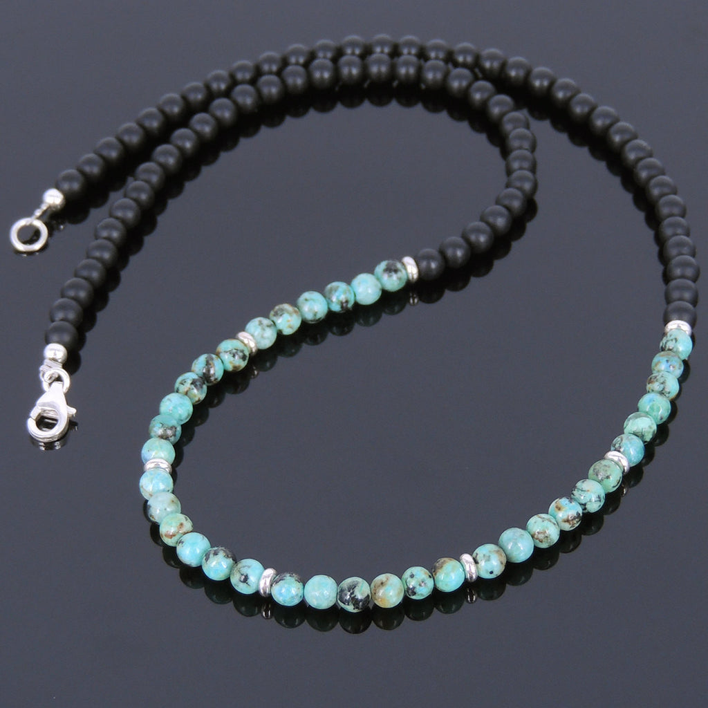 Materials: Gemstone,Matte Black Onyx,African Green Turquoise,925 Sterling Silver