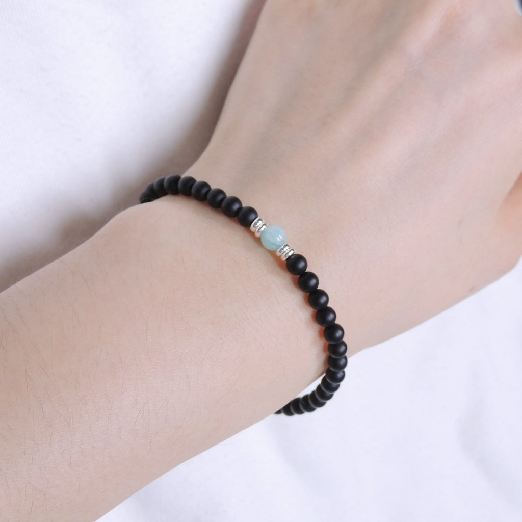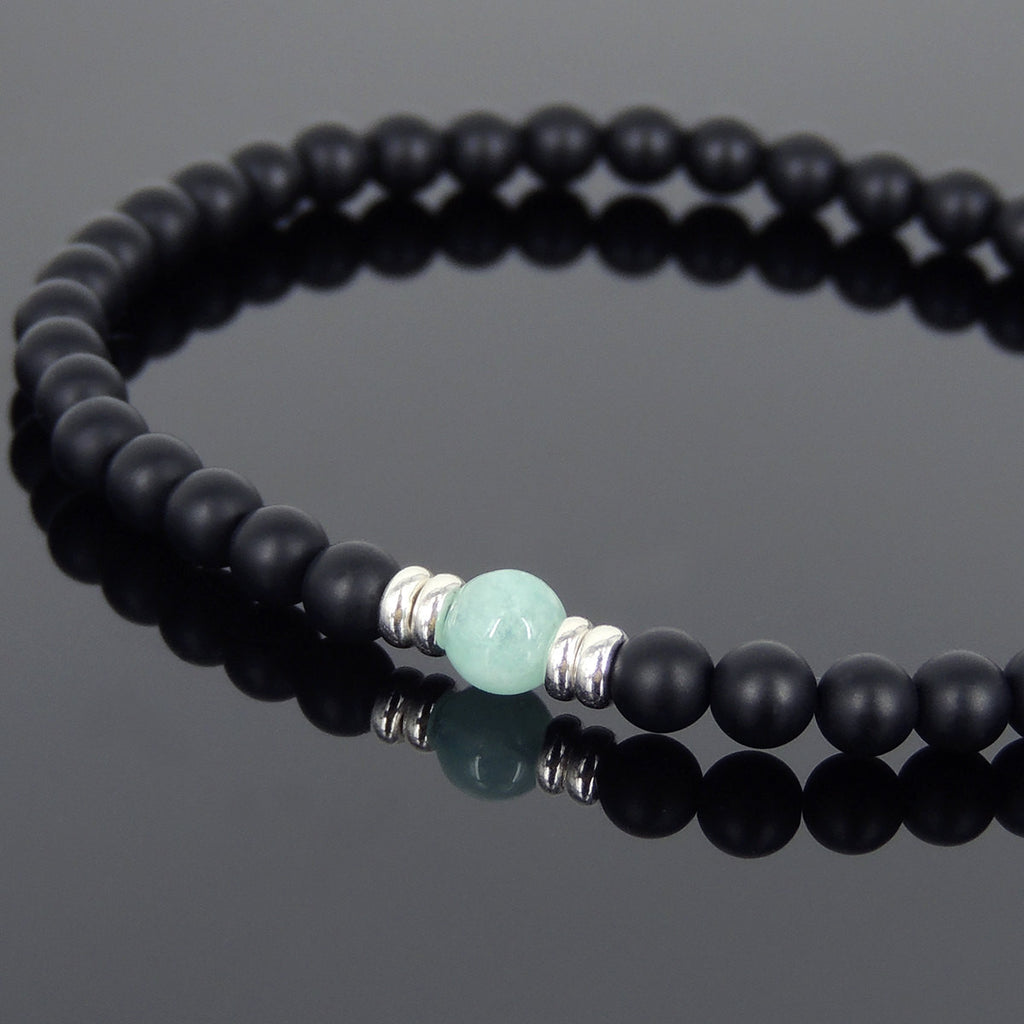 Materials: Gemstone,Matte Black Onyx,Amazonite,925 Sterling Silver,Elastic Cords