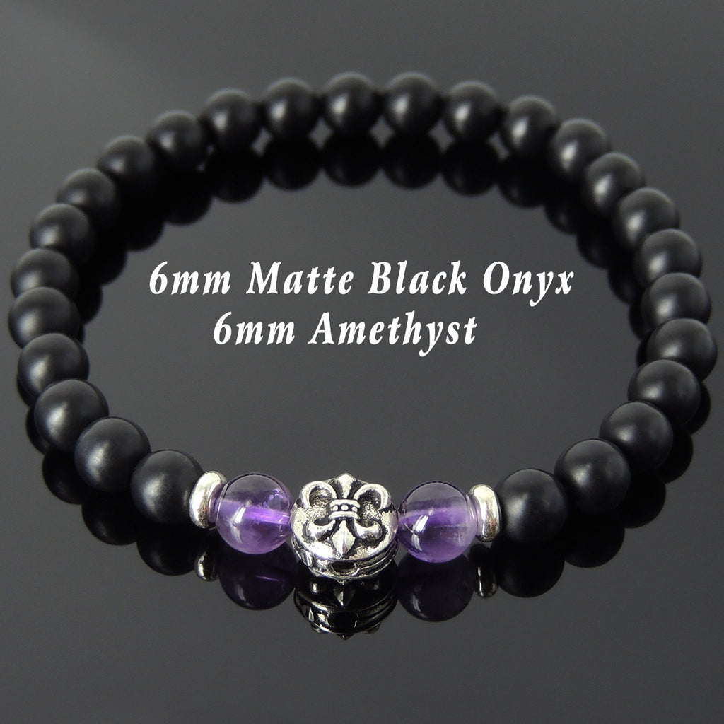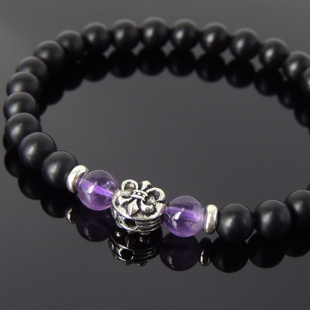 Materials: Gemstone,Matte Black Onyx,Amethyst,925 Sterling Silver,Elastic Cords