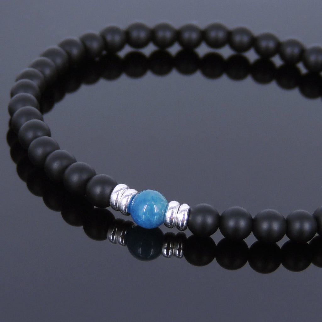 Materials: Gemstone,Matte Black Onyx,Apatite,925 Sterling Silver,Elastic Cords