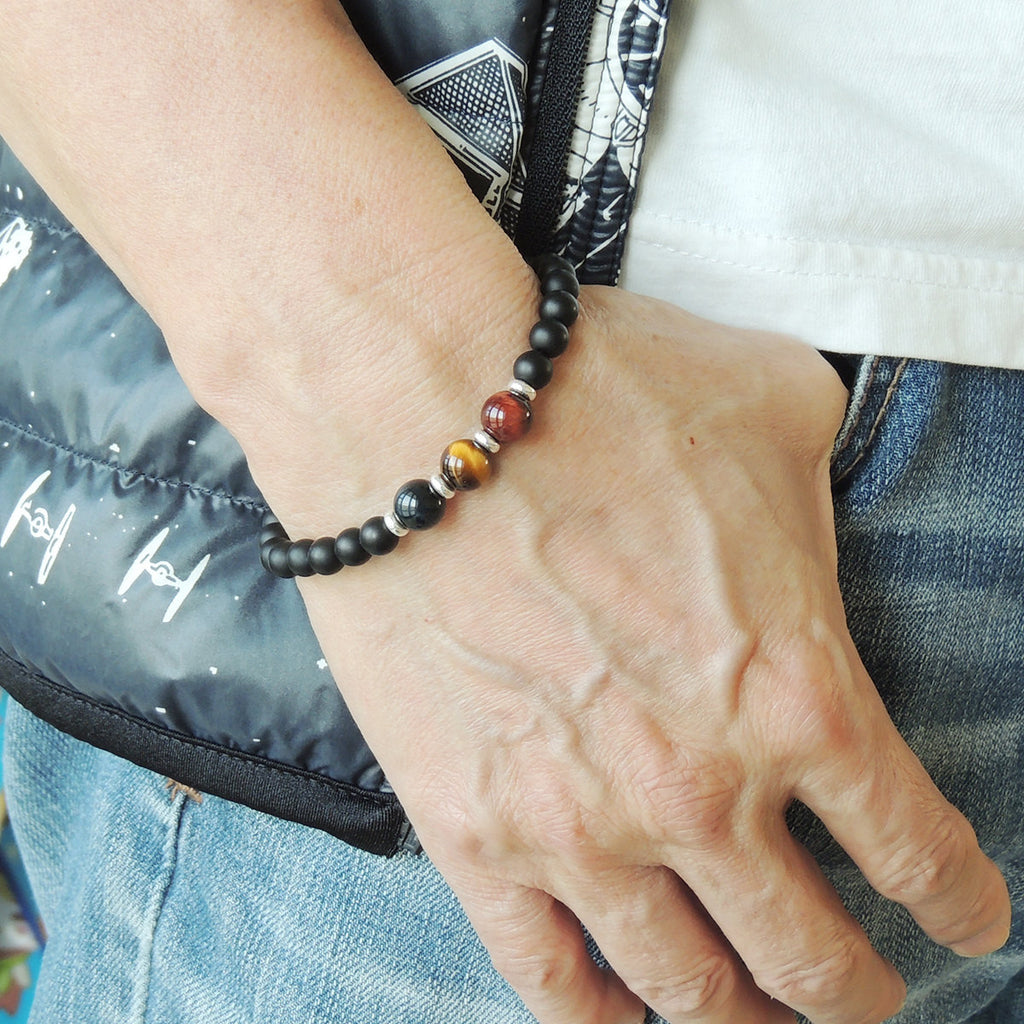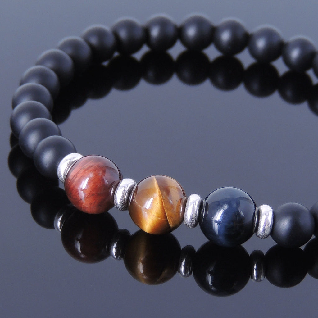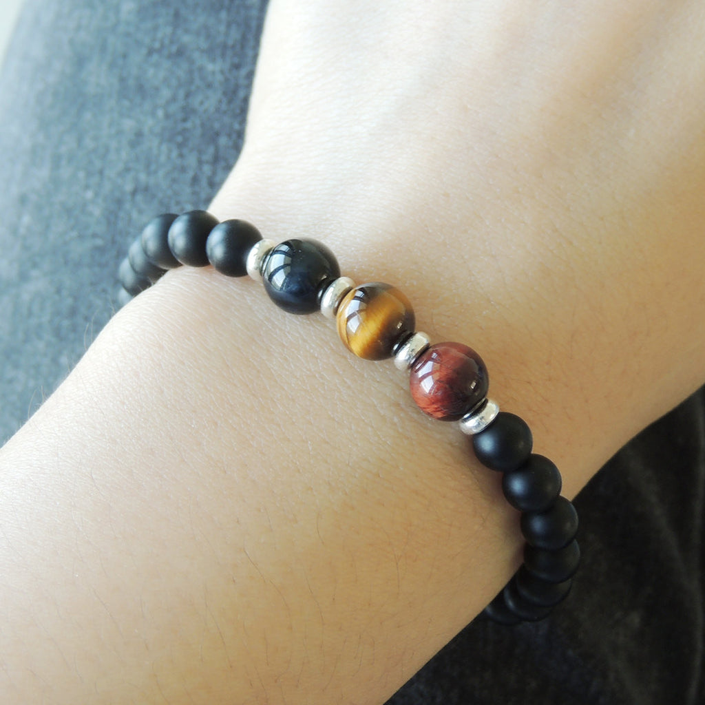 Materials: Healing Stone,Gemstone,Blue Tiger Eye,Red Tiger Eye,Brown Tiger Eye,Matte Black Onyx,925 Sterling Silver,Elastic Cords