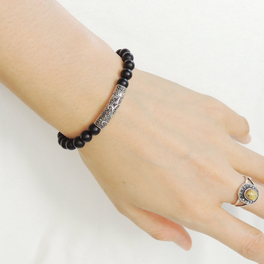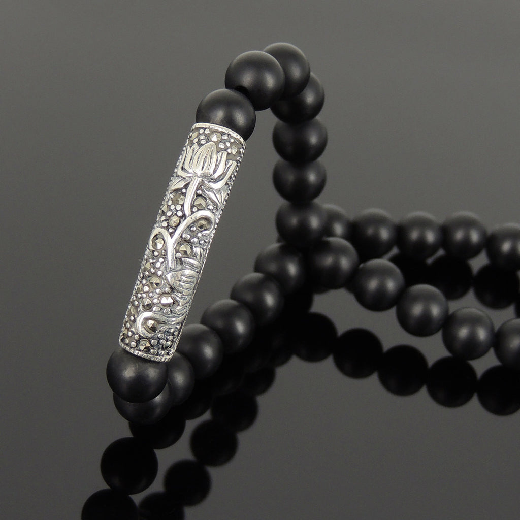 Materials: Healing Stone,Matte Black Onyx,925 Sterling Silver,Marcasite,Elastic Cords