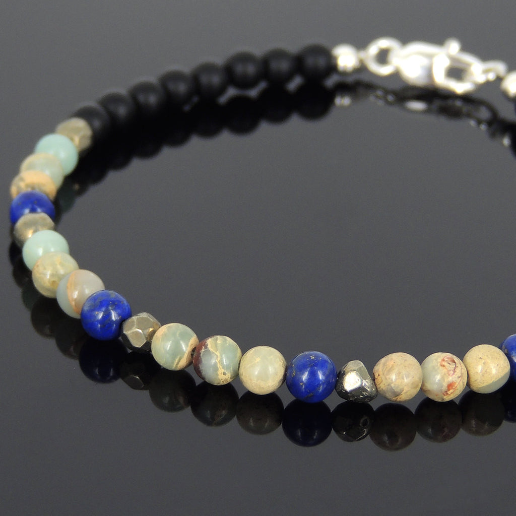 Materials: Gemstone,Jasper Stone,Matte Black Onyx,Lapis Lazuli,Gold Pyirte,925 Sterling Silver