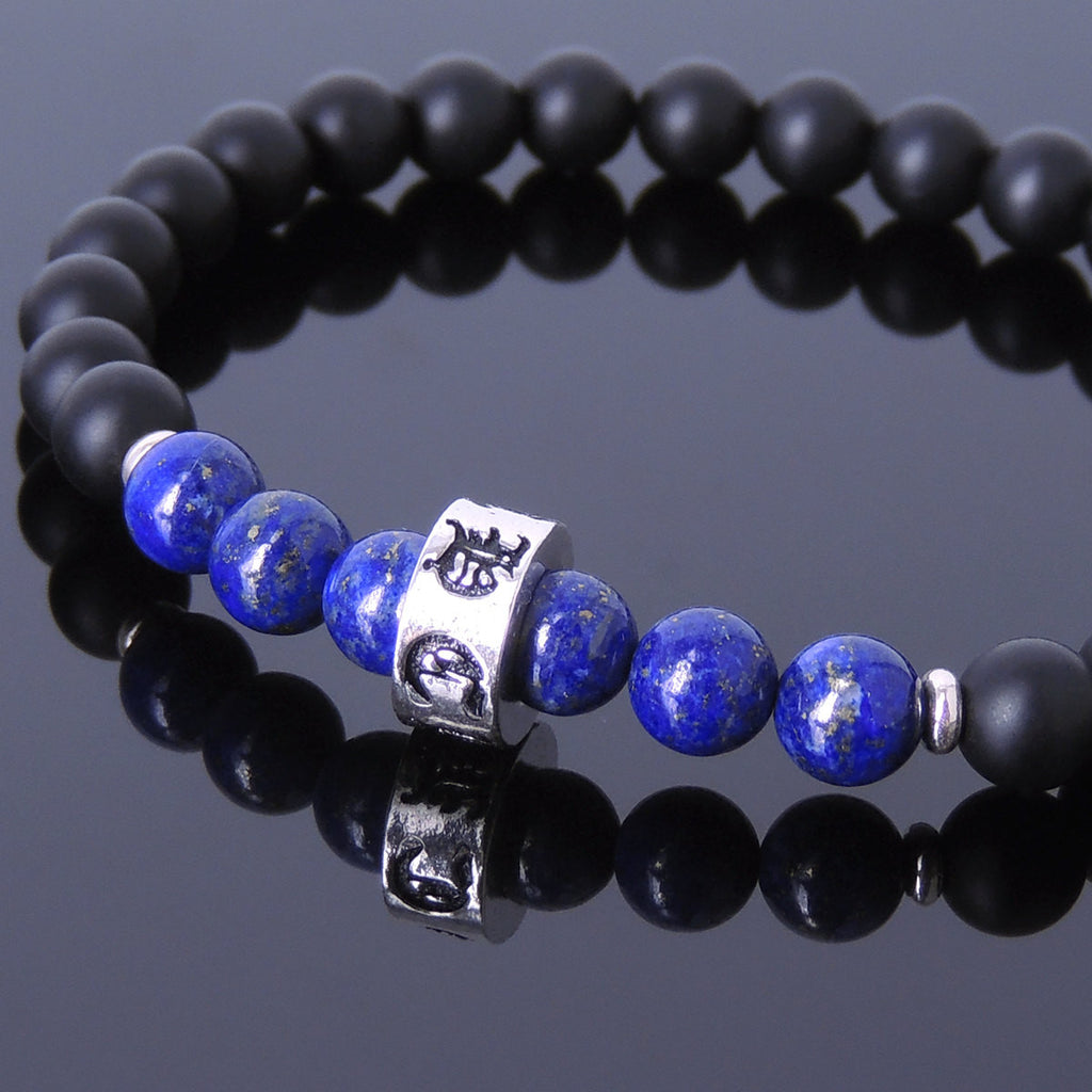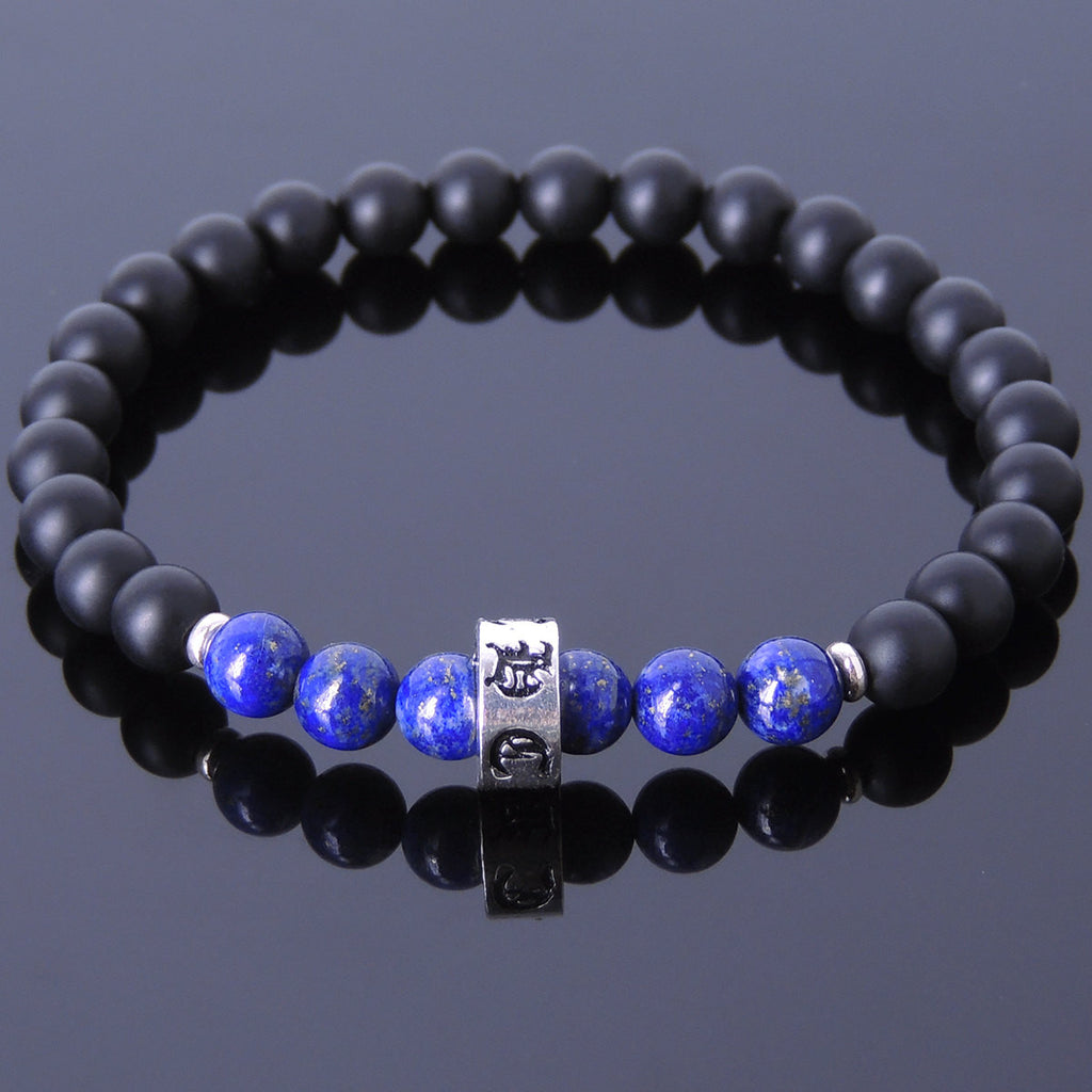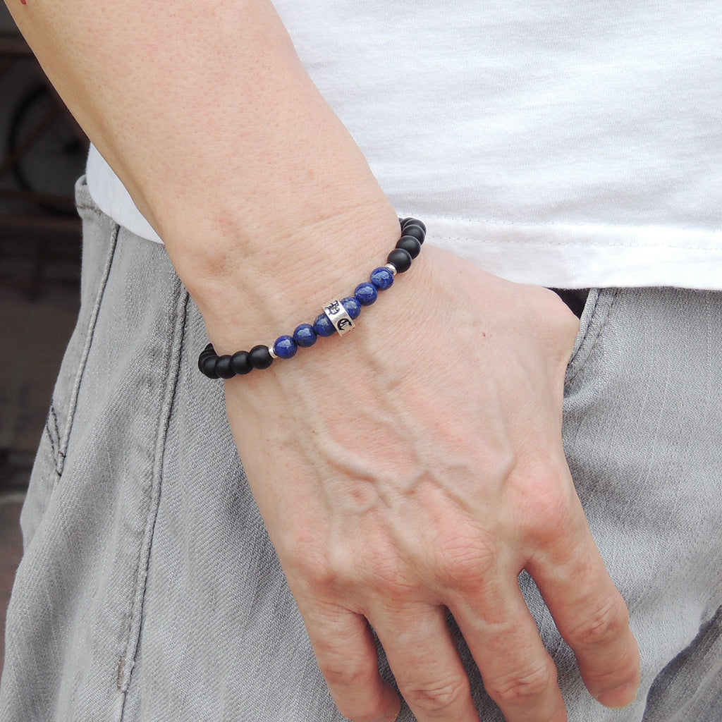 Materials: Gemstone,Matte Black Onyx,Lapis Lazuli,925 Sterling Silver,Elastic Cords