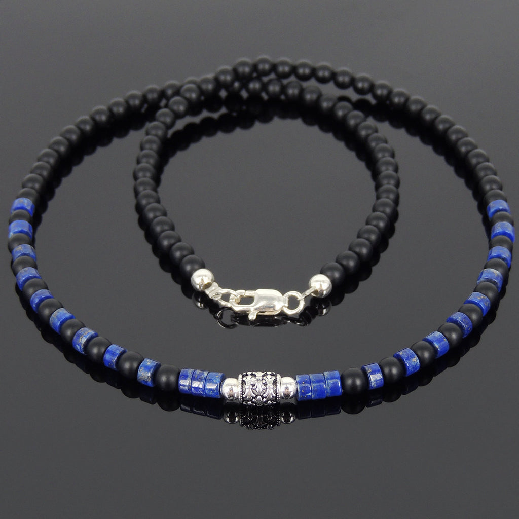 Materials: Gemstone,Matte Black Onyx,Natural Lapis Lazuli,925 Sterling Silver