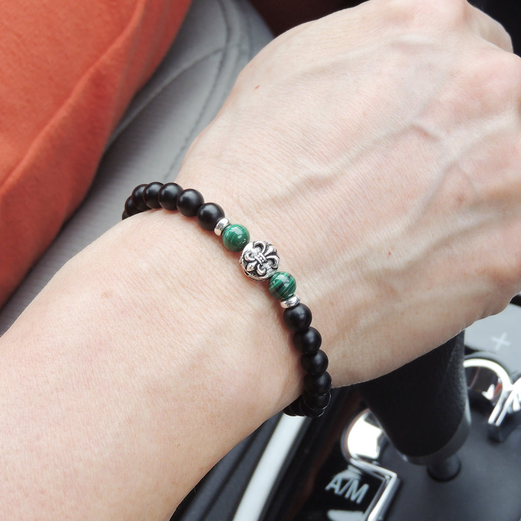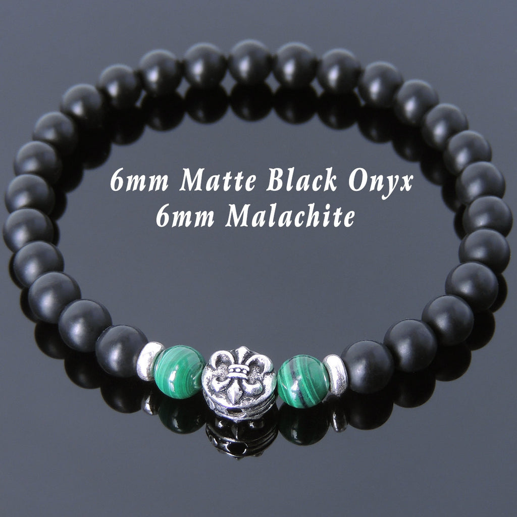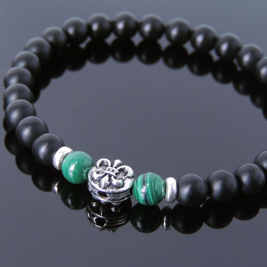Materials: Gemstone,Matte Black Onyx,Malachite,925 Sterling Silver,Elastic Cords