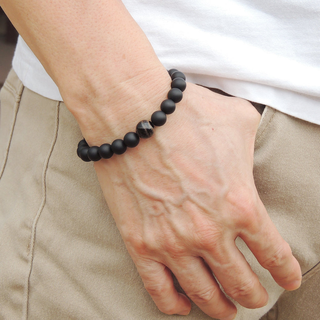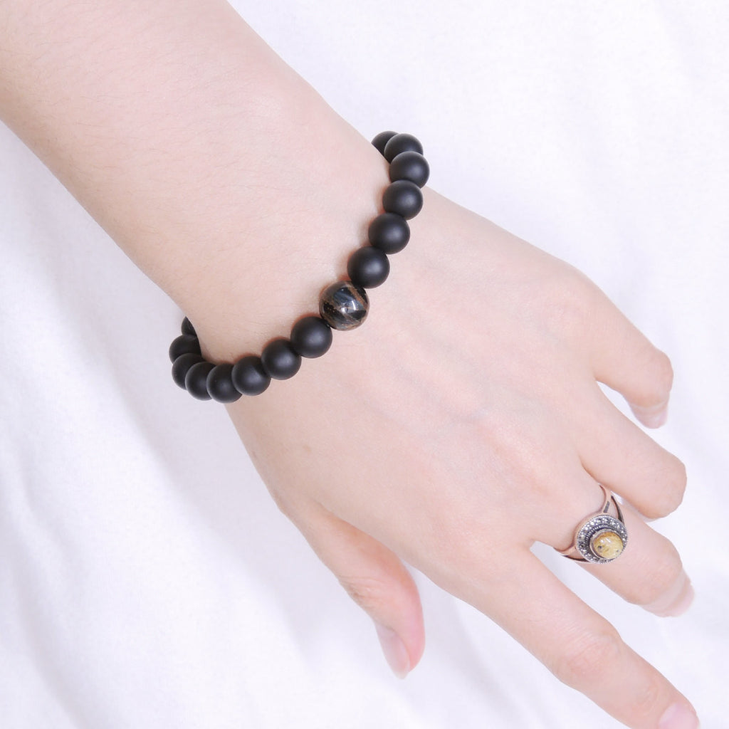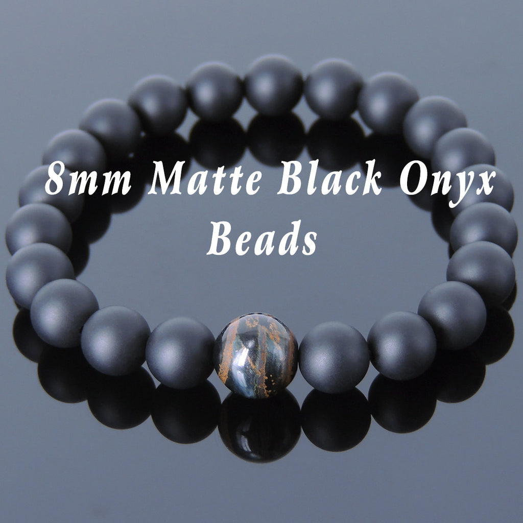 Materials: Gemstone,Matte Black Onyx,Mixed Blue Tiger Eye,Elastic Cords