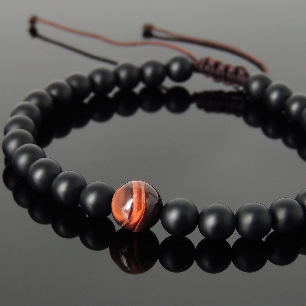 Materials: Gemstone,Matte Black Onyx,Red Tiger Eye,Chinese Strong Braided Cords