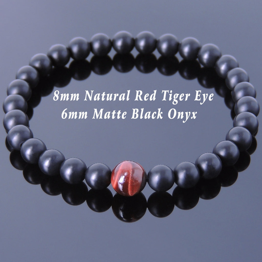 Materials: Gemstone,Matte Black Onyx,Red Tiger Eye,Elastic Cords