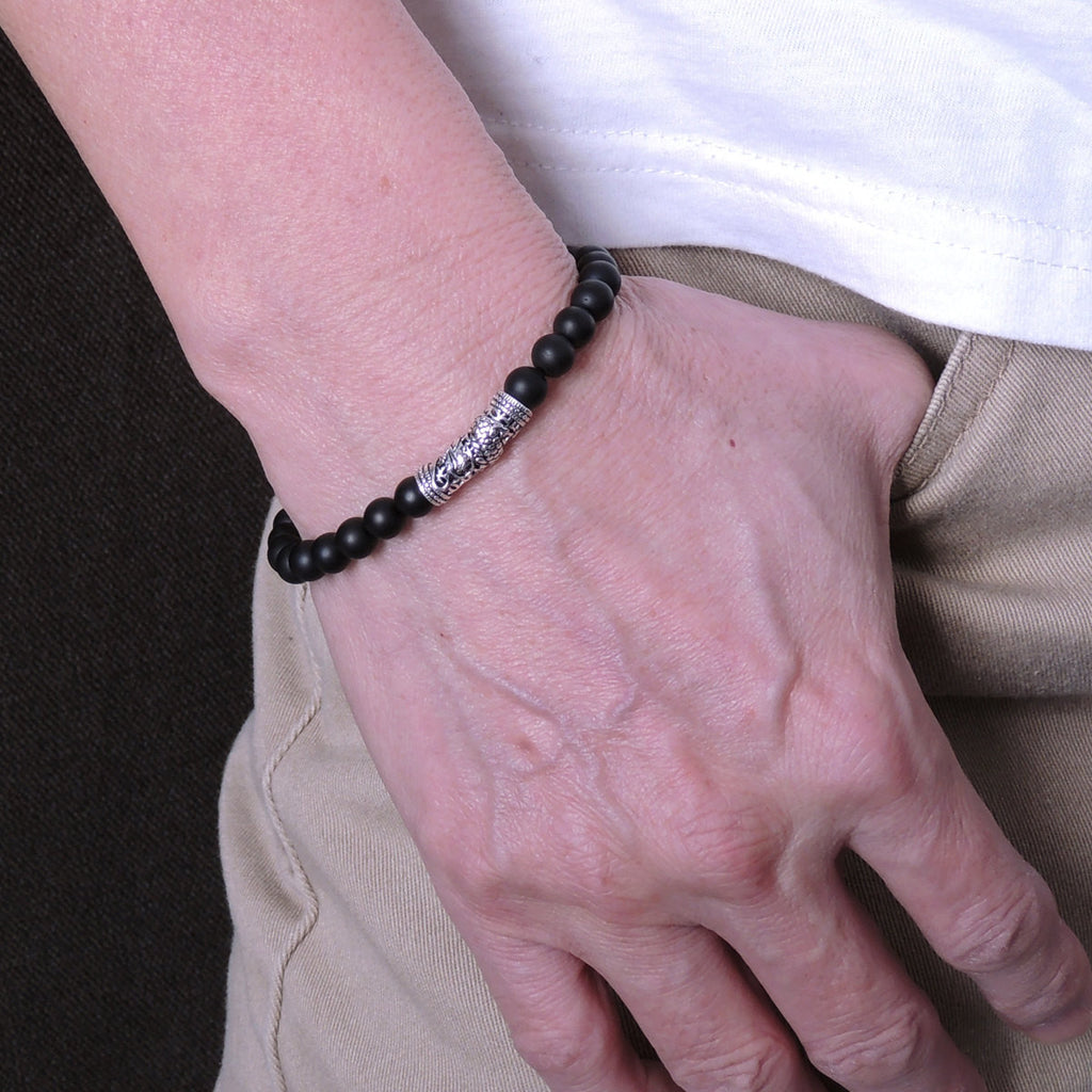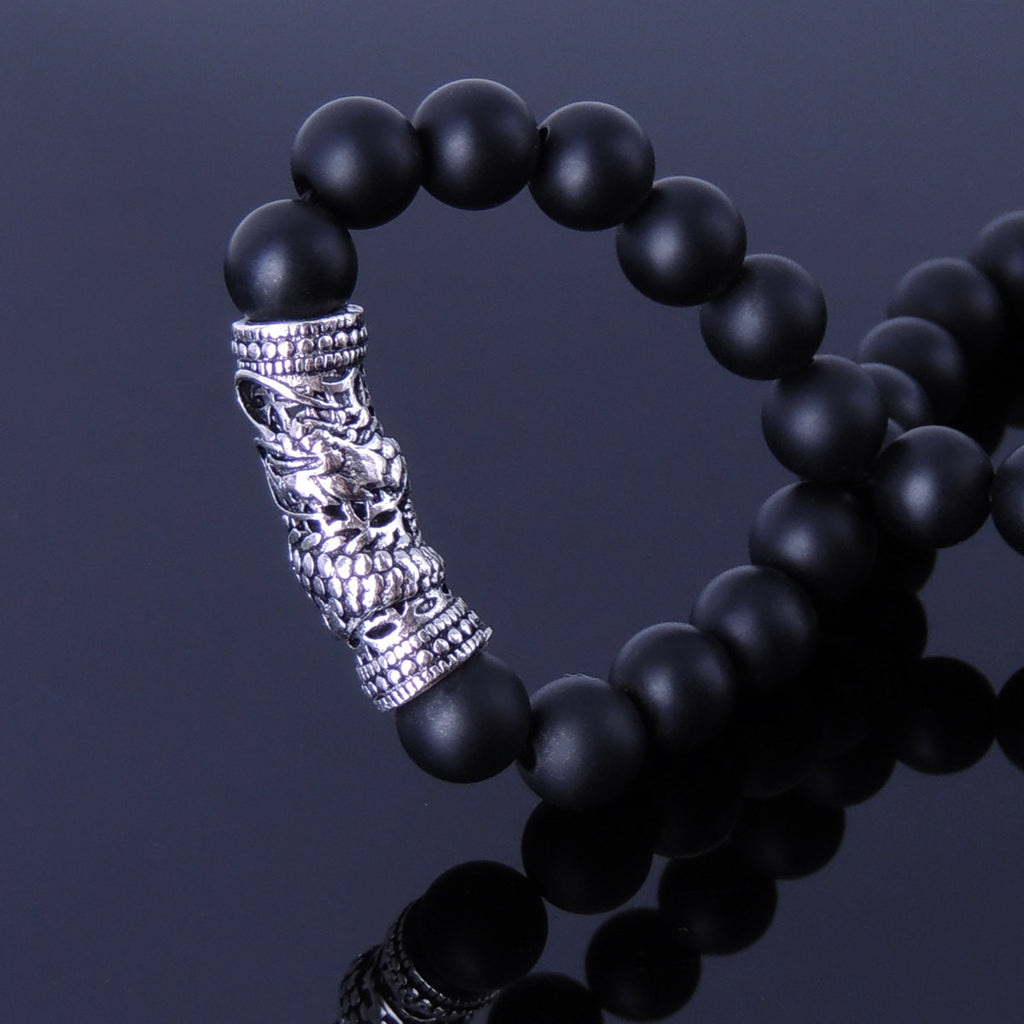 Men's Women Matte Black Onyx Sterling Silver Bracelet Dragon Charm DiyNotion Handmade BR270