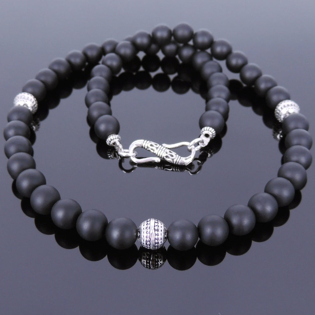 Men's Women Matte Black Onyx Sterling Silver Necklace Gemstone 925 Spacers Clasp DiyNotion Handmade NK117