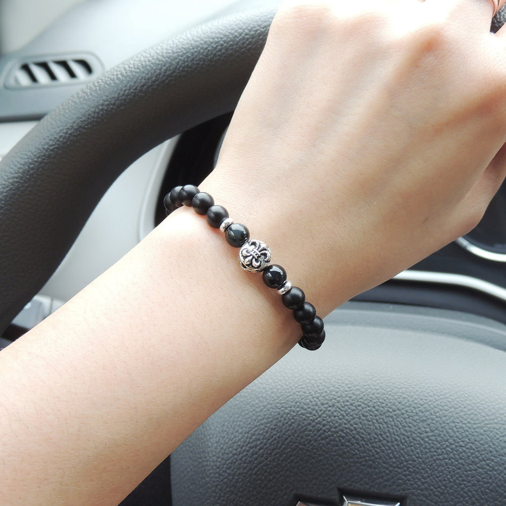 Materials: Gemstone,Matte Black Onyx,Blue Tiger Eye,925 Sterling Silver,Elastic Cords
