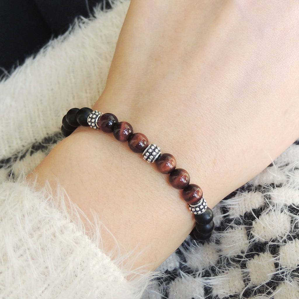 Materials: Gemstone,Matte Black Onyx,Red Tiger Eye,925 Sterling Silver,Elastic Cords