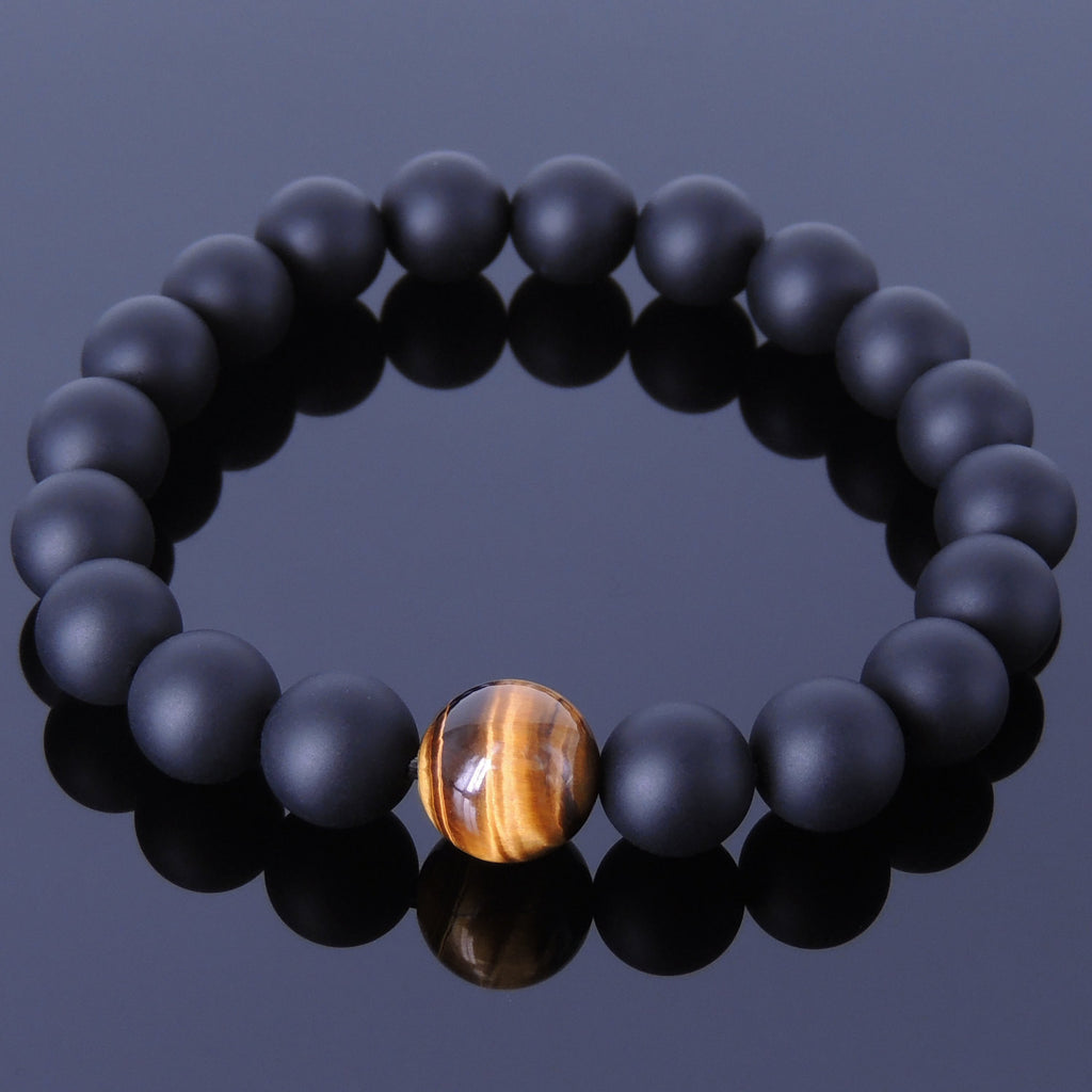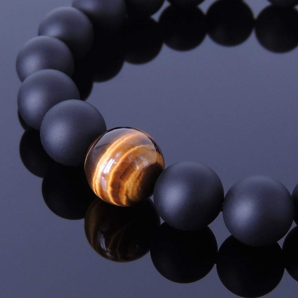 Materials: Gemstone,Matte Black Onyx,Brown Tiger Eye,Elastic Cords