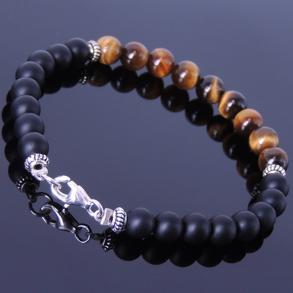 Materials: Gemstone,Matte Black Onyx,Brown Tiger Eye,925 Sterling Silver