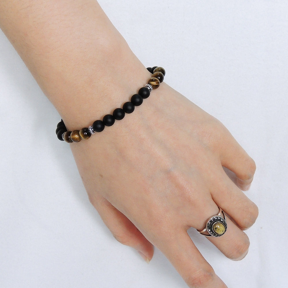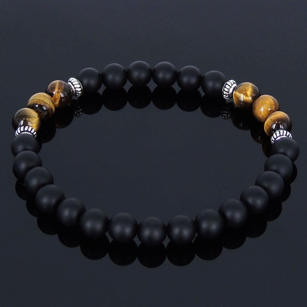 Materials: Gemstone,Matte Black Onyx,Brown Tiger Eye,925 Sterling Silver,Elastic Cords