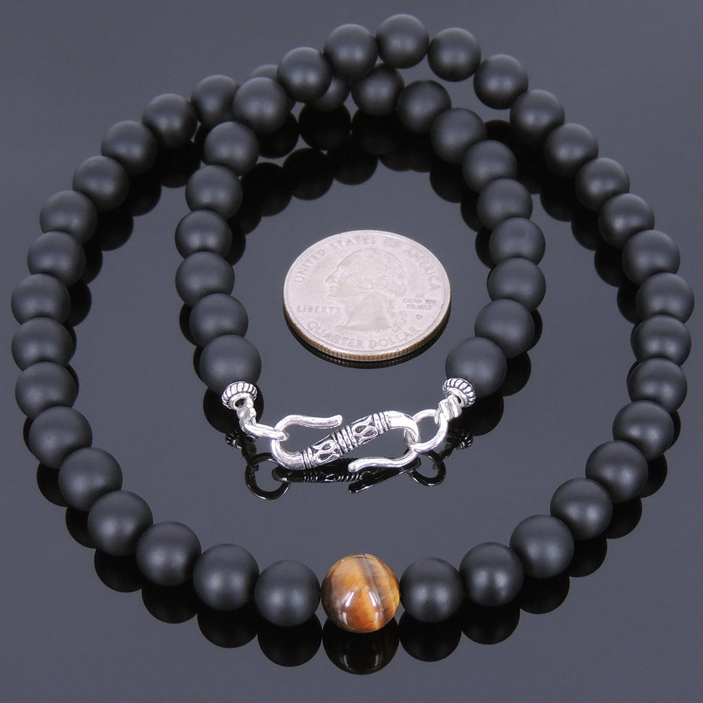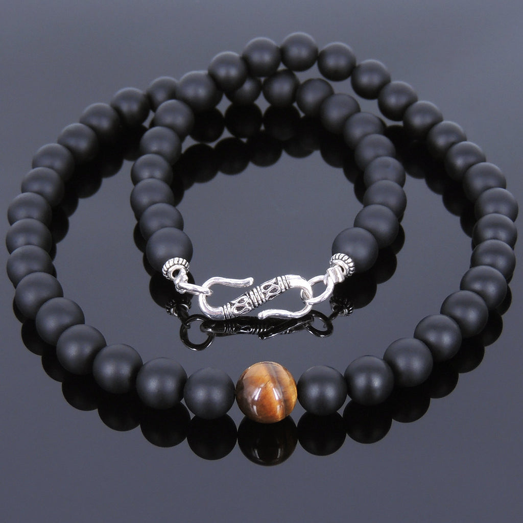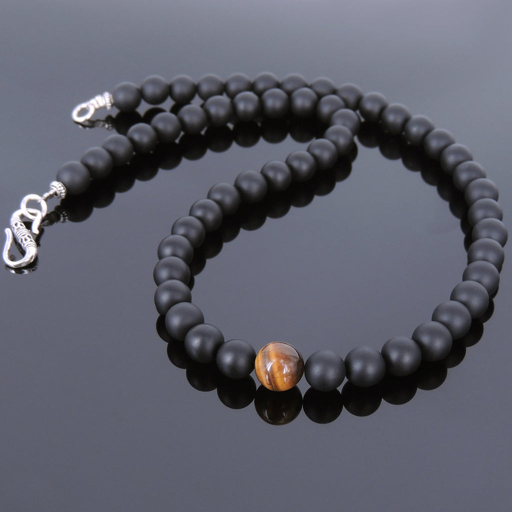 Materials: Gemstone,8mm Matte Black Onyx,Brown Tiger Eye,925 Sterling Silver