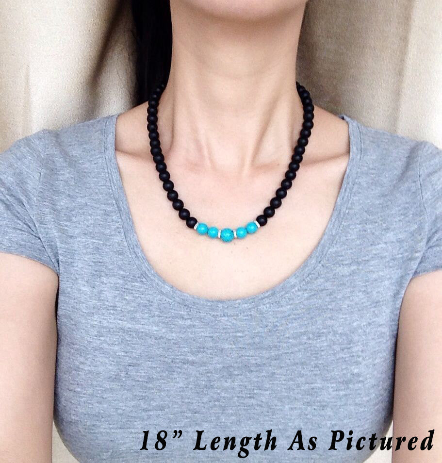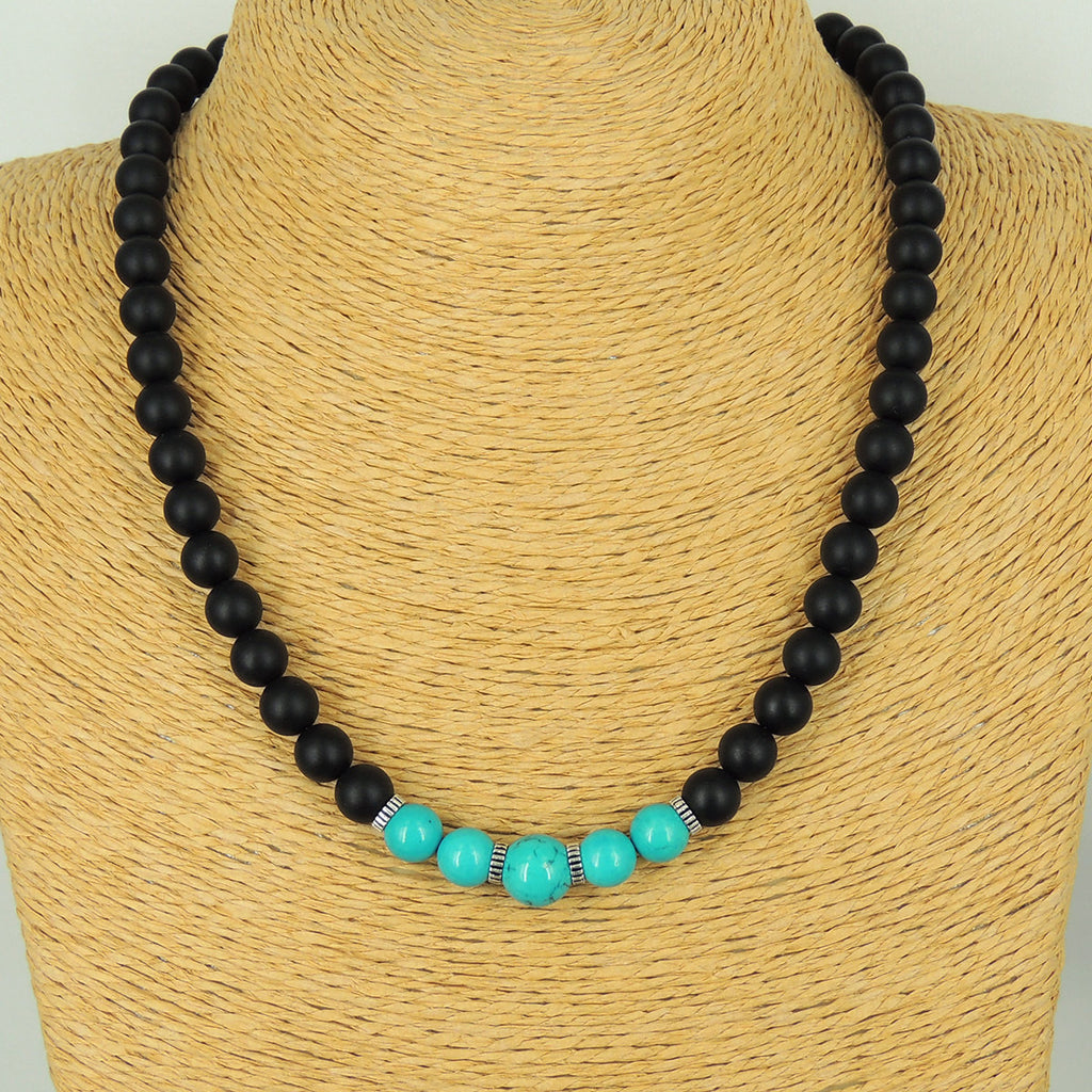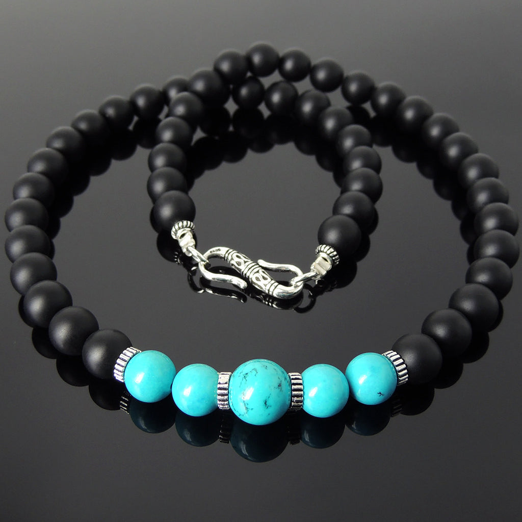 Materials: Gemstone,8mm Matte Black Onyx,Enhanced Turquoise,925 Sterling Silver,Stainless Steel Wire