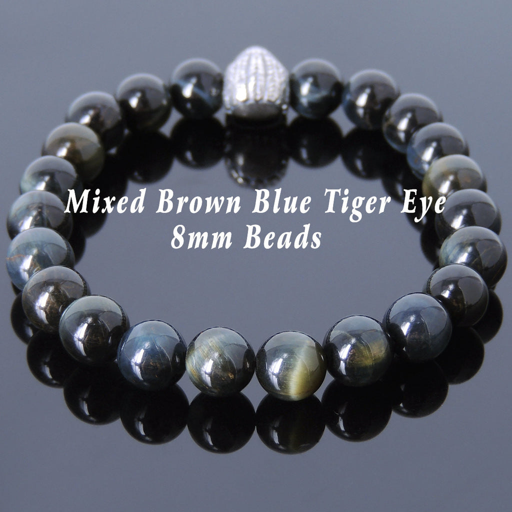 Materials: Gemstone,Mixed Brown Blue Tiger Eye,925 Sterling Silver,Elastic Cords