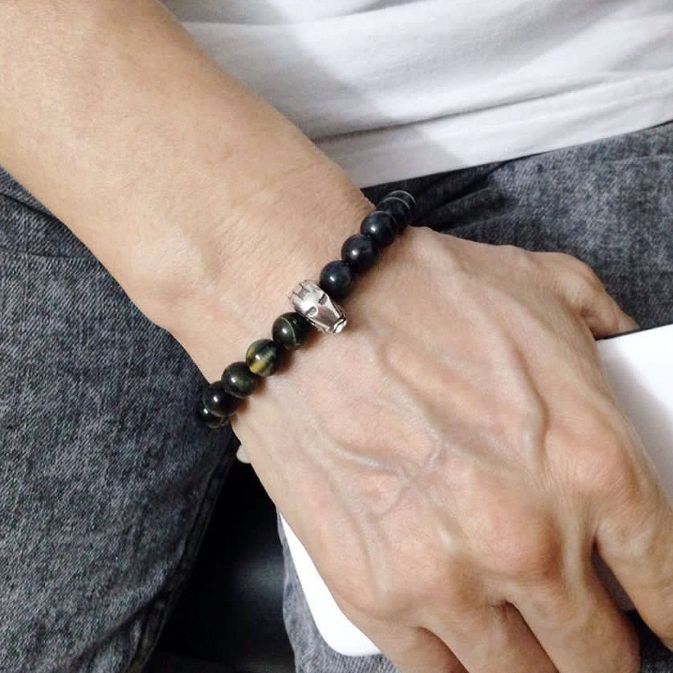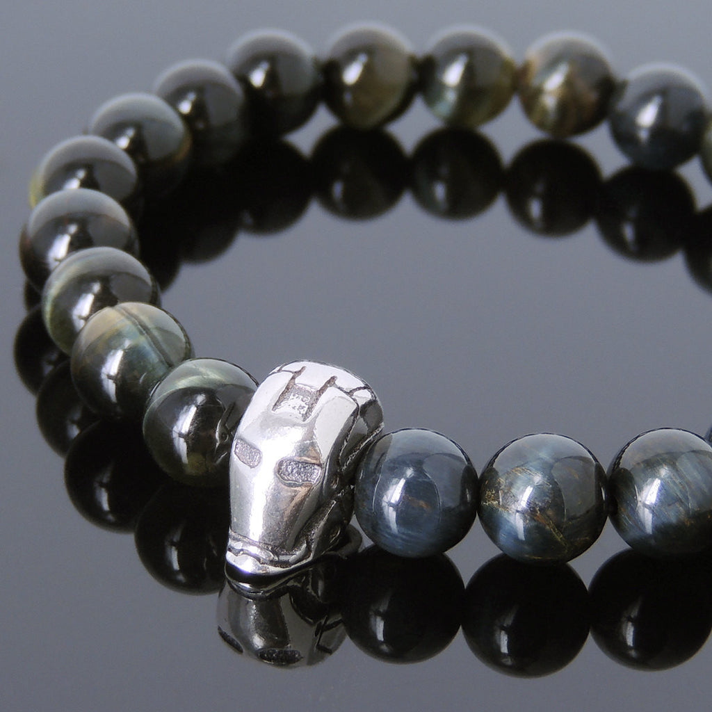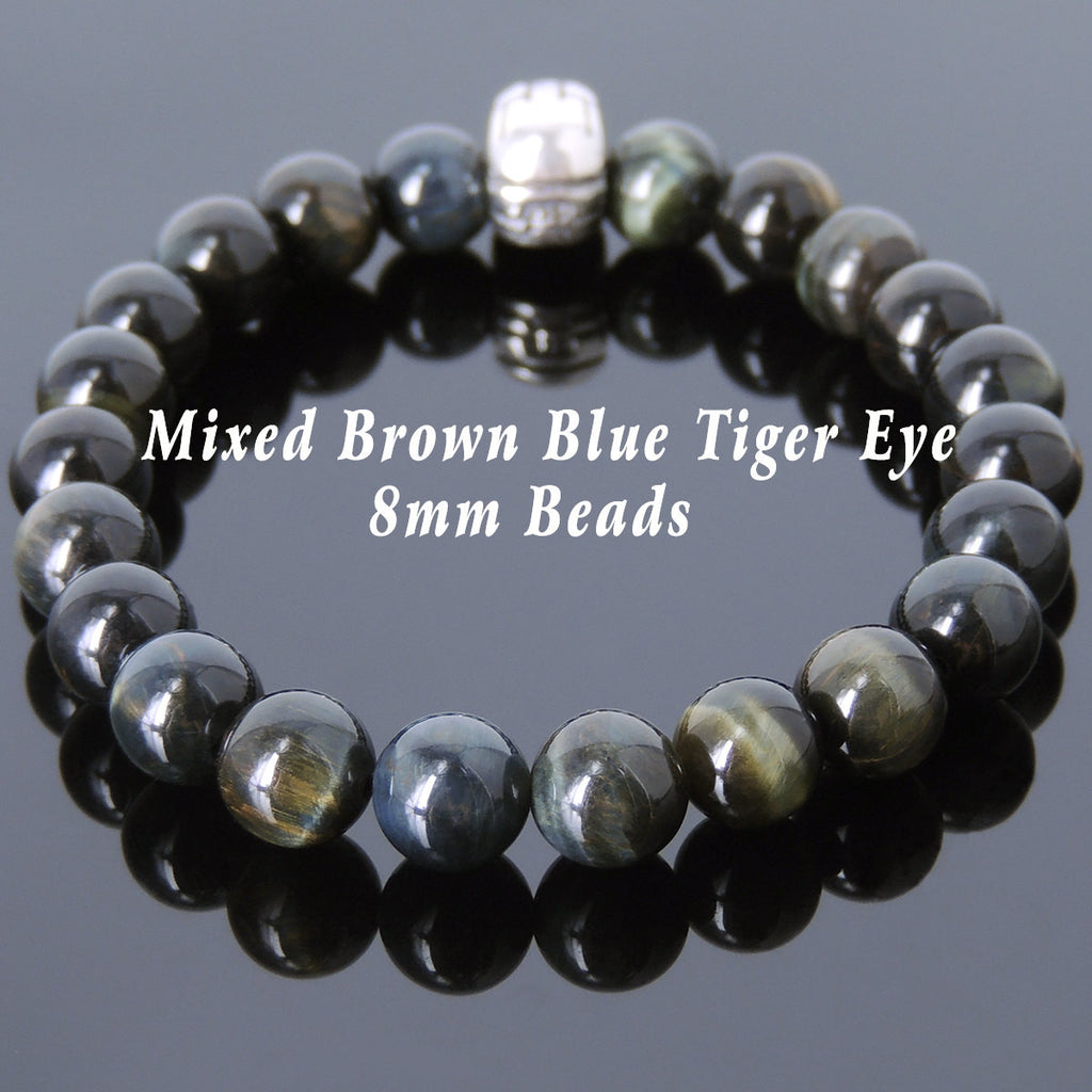 Men's Women Mixed Brown Blue Tiger Eye Bracelet 925 Sterling Silver Ironman Mask DiyNotion Handmade BR609